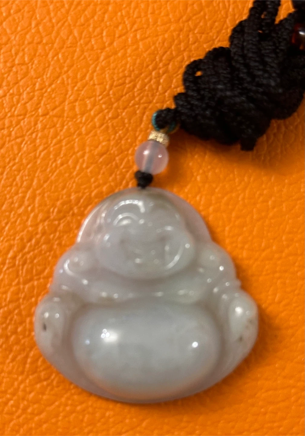 This item is a Laughing Buddha jade pendant, often carved from materials
