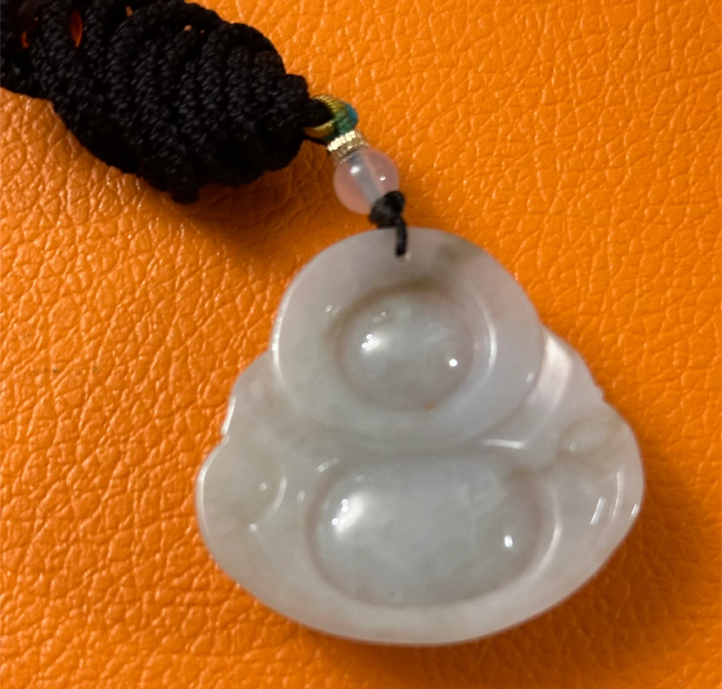 This item is a Laughing Buddha jade pendant, often carved from materials