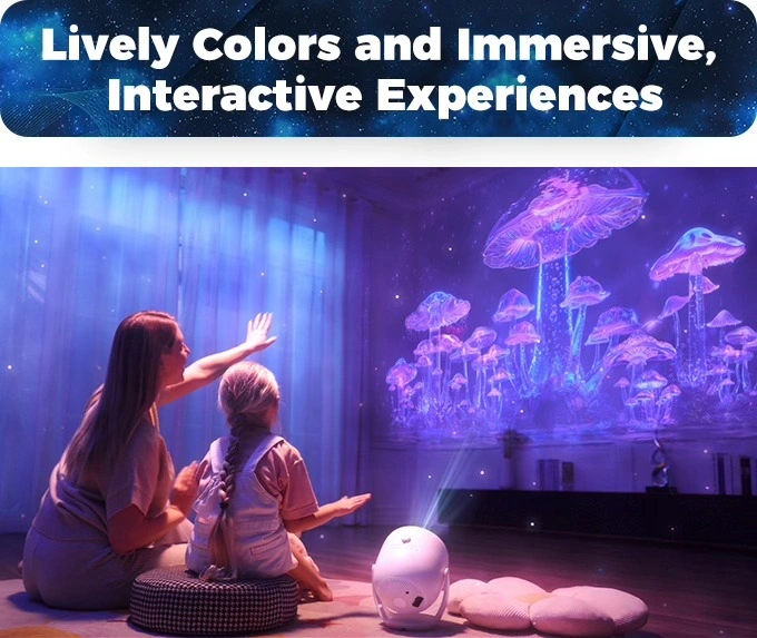 LIKE NEW. It offers over 50 3D animation themes, from forests and oceans to space and festivals, making it ideal for home gatherings, meditation, and sleep aids. With 4K resolution and high-saturation projection, it delivers vivid, lifelike visuals enhanced by synchronized audio-visual effects. The projector has a wide projection area and 180° rotation for immersive experiences. It synchronizes light and music precisely, creating atmosphere with lighting that matches the rhythm for an immersive, live-like experience. Original price was $169+ Shipping and Taxes. Product page: https://tinyurl.com/twelvetoo