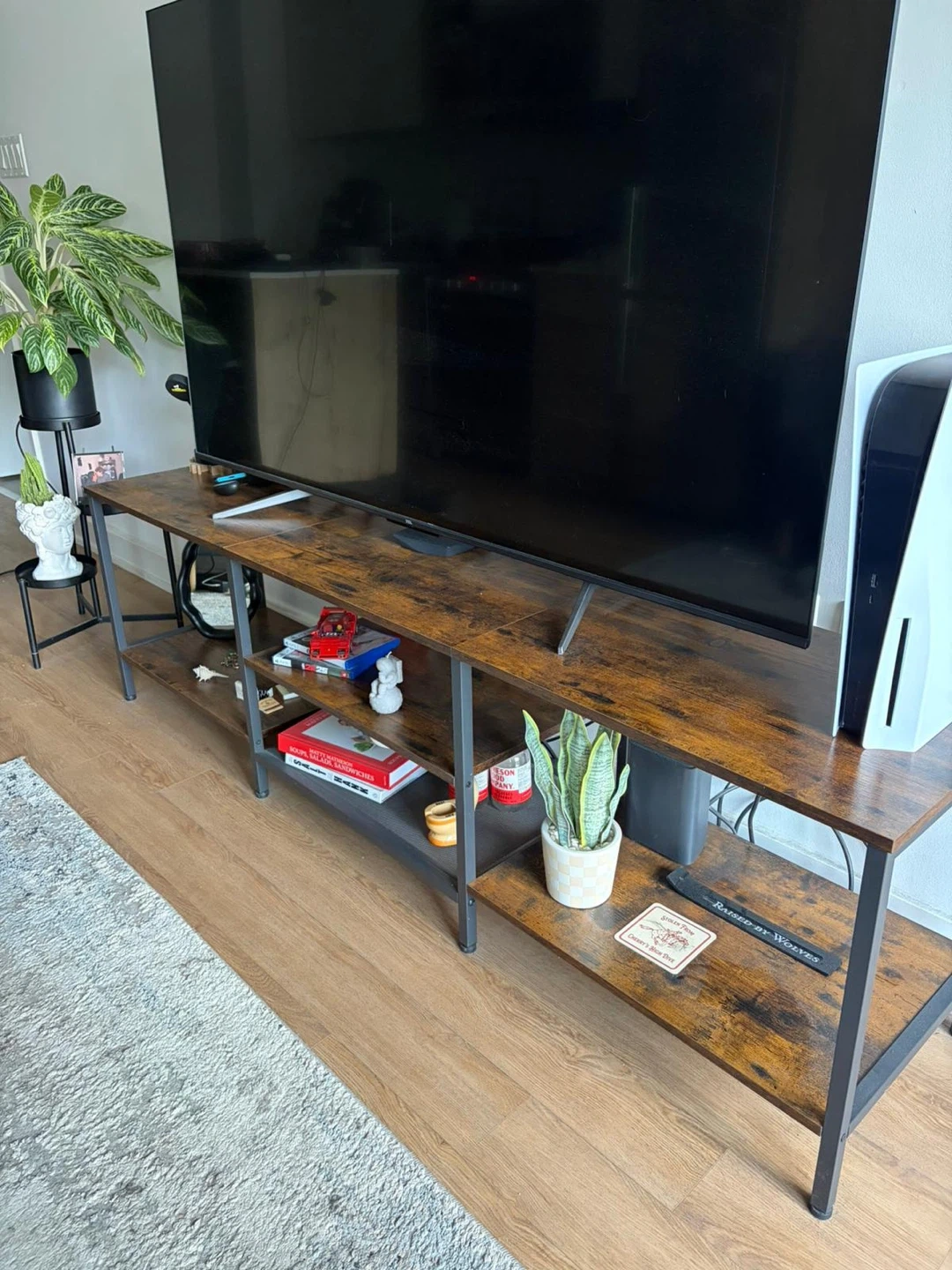 Rustic Brown TV Stand with Shelves