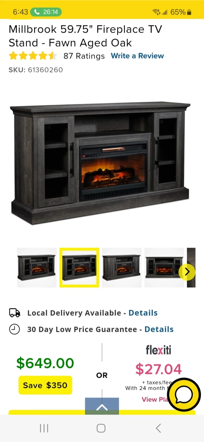 !!BRAND NEW!! . NEVER OPENED still in box. Millbrook fireplace TV stand 59.75 inches wide. It's finished in Fawn Aged Oak. The unit includes a built-in electric fireplace for cozy ambiance. Plenty of storage space is provided with cabinets and shelving.