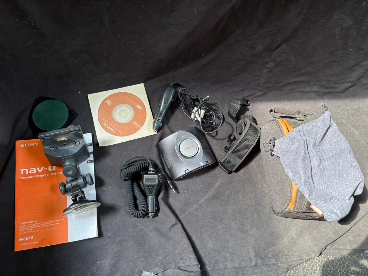 good condition Sony nav-u NV-U70 Personal Navigation System Vintage Sony nav-u NV-U70 GPS in box with accessories. Includes: unit, car charger, carrying case, manuals, and software disc. Good used condition. $8