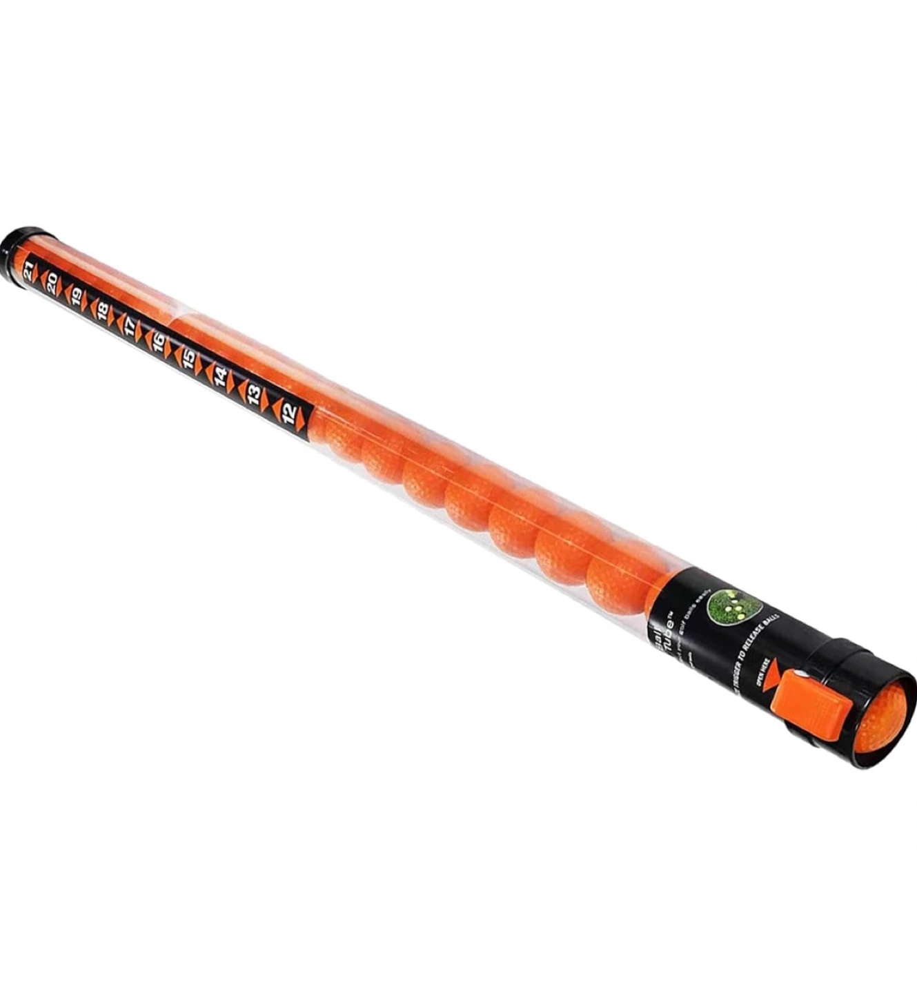 Set of 21 practice golf balls holder and picker. Comes in a clear plastic tube dispenser. Great for putting practice. (Ball not included)