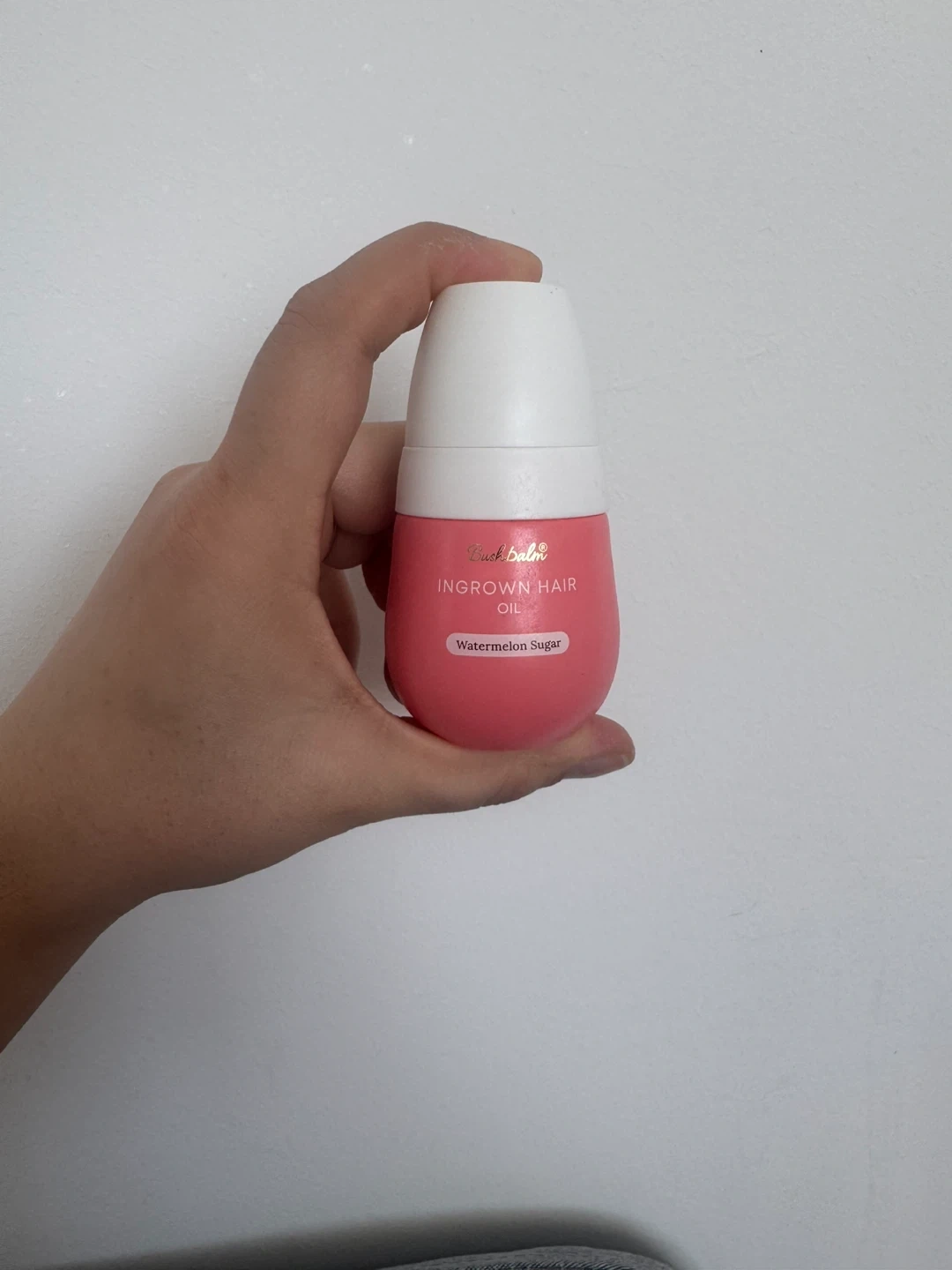 Bush Balm Ingrown Hair Oil in Watermelon Sugar scent. This oil helps prevent and treat ingrown hairs. It's formulated with nourishing ingredients. 75% of the bottle is full