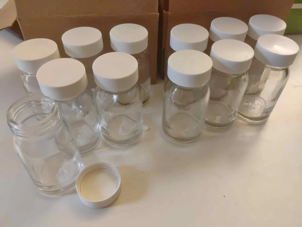 12 Glass Shot Bottles w/White Lids