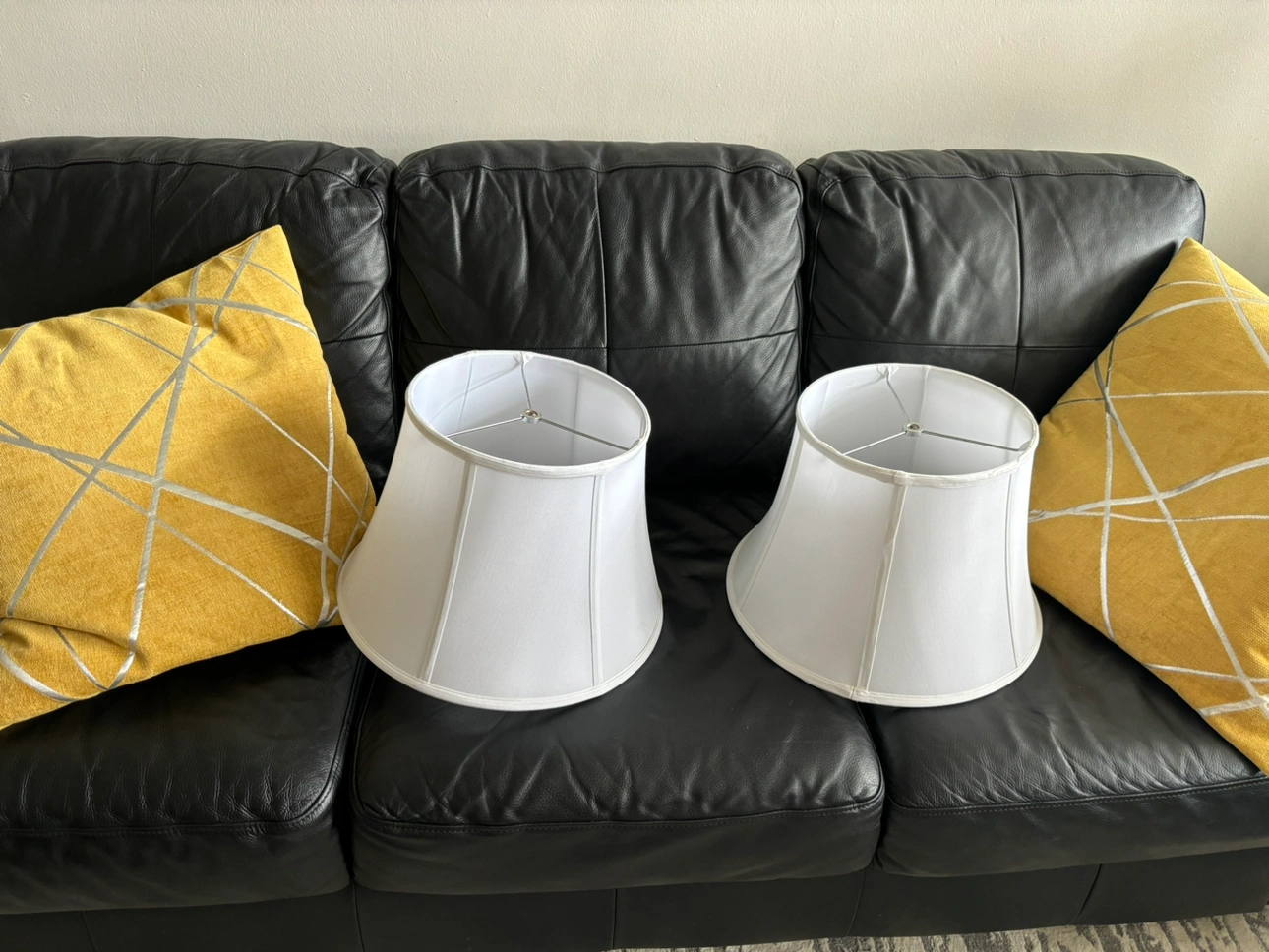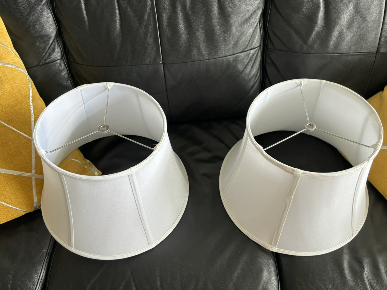 Beautiful white large barrel lamp shade x2 , bought last year from pet and smoke free home . Downsizing and hoping someone can put them to great use. 20$ obo