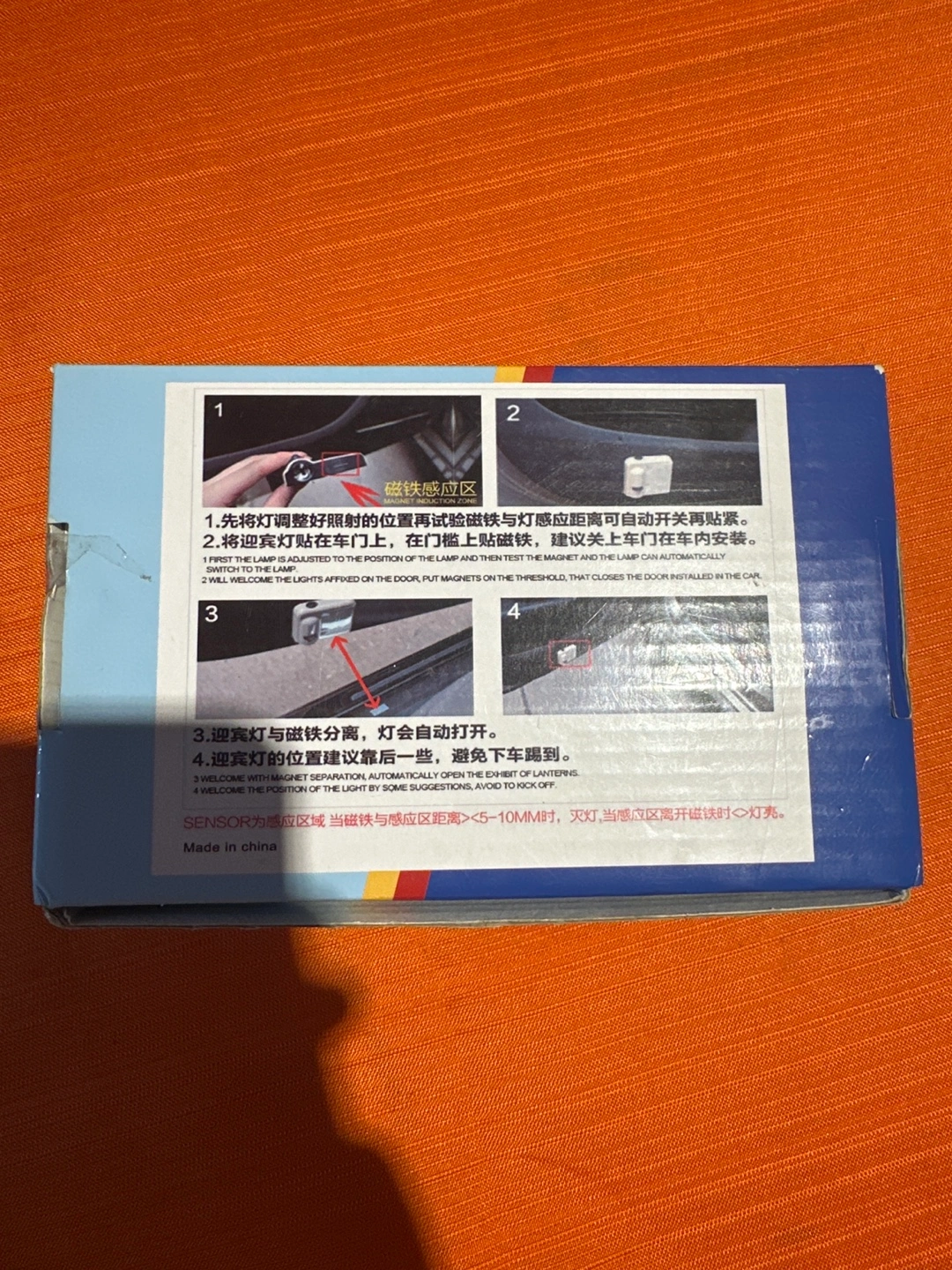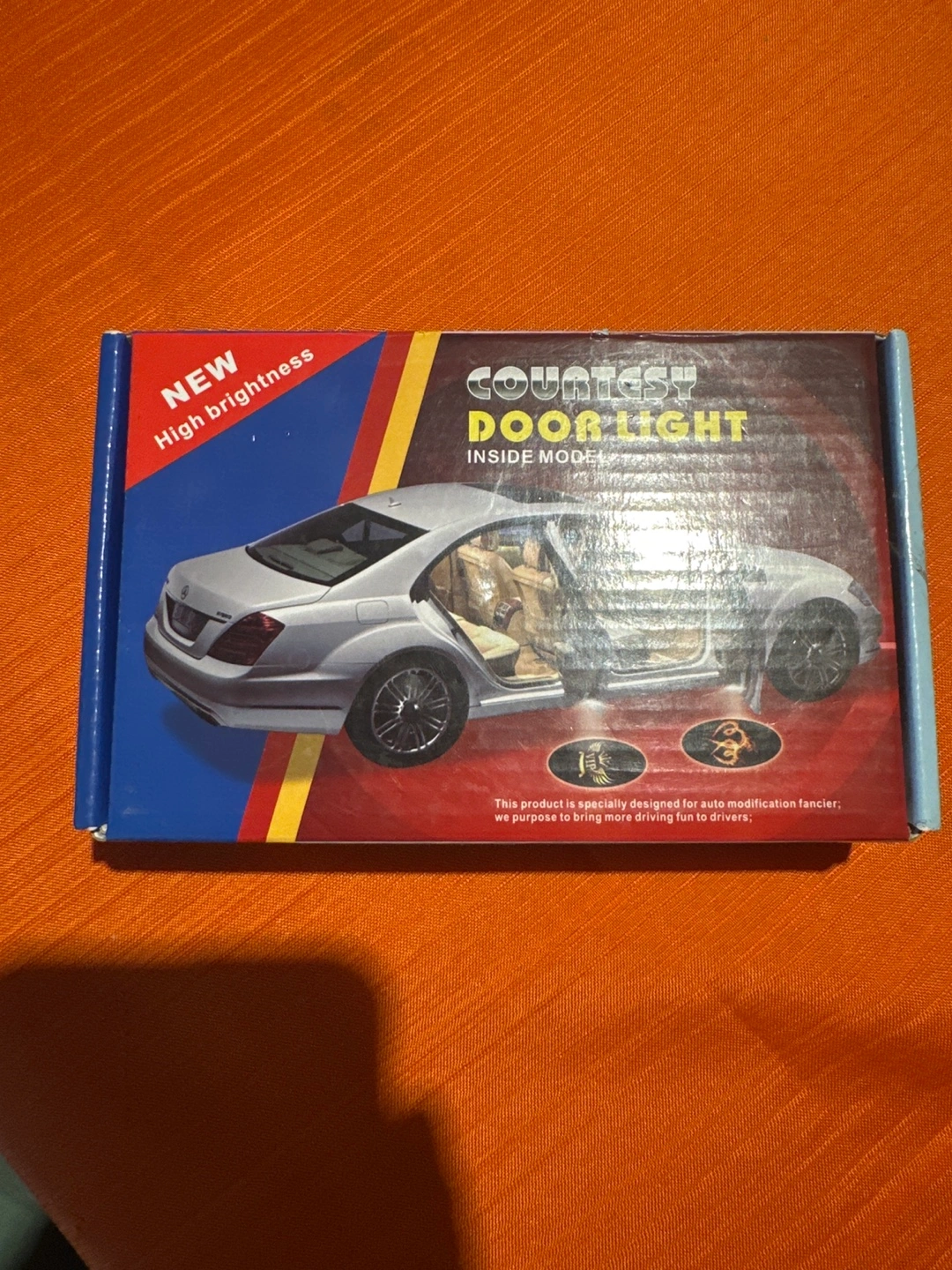 Selling a new courtesy door light with high brightness. The box includes instructions on how to install the lights on your car door. This product is specially designed for auto modification fanciers; we purpose to bring more driving fun to drivers