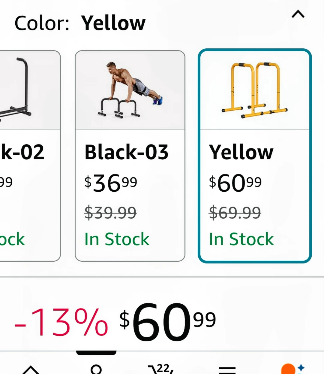 Yellow parallel bars, adjustable height. Heavy duty steel construction. Easy setup. Supports up to 400 lbs. Non-slip feet. Ideal for dips, push-ups, and other exercises.