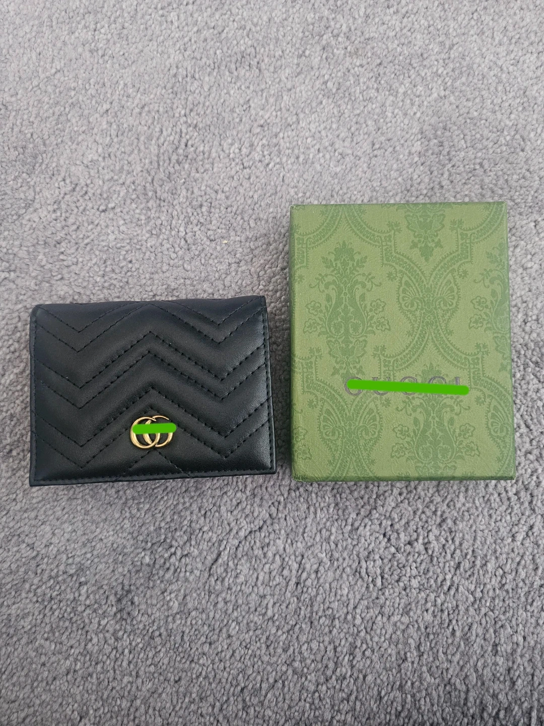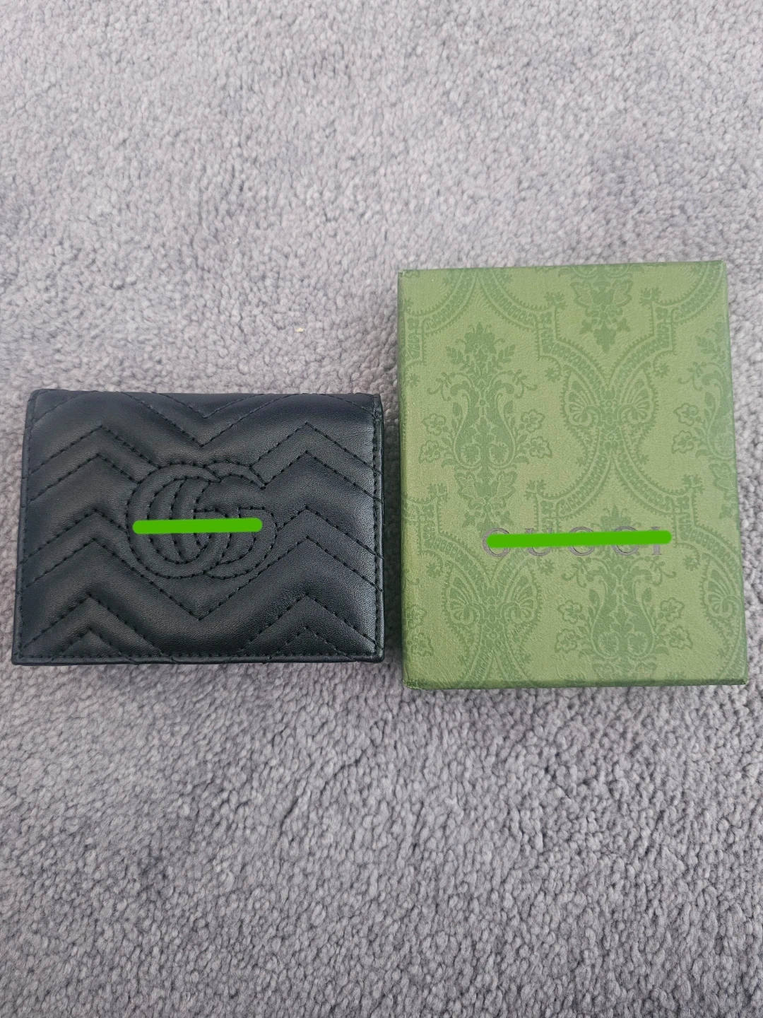This is a black quilted leather bifold wallet. It is inspired by the iconic GG logo hardware. Has multiple card slots and a zipper pouch inside. Includes box and duster bag. Message for more pictures
