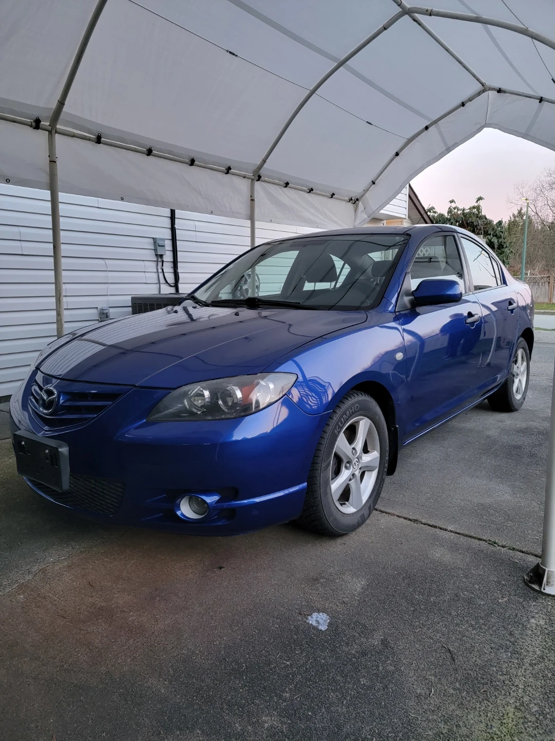 Selling a blue Mazda 3 sedan. It's a stylish and reliable car! Regular maintenance on it just did a oil change synthetic oil runs good. No issues. New tires and just replaced the engine with 155000 km on it so lots of life to go.