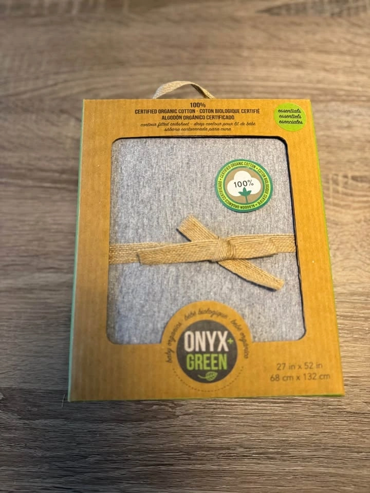 1 certified organic cotton contour fitted crib sheet $20 - never opened 27 x 52 inch