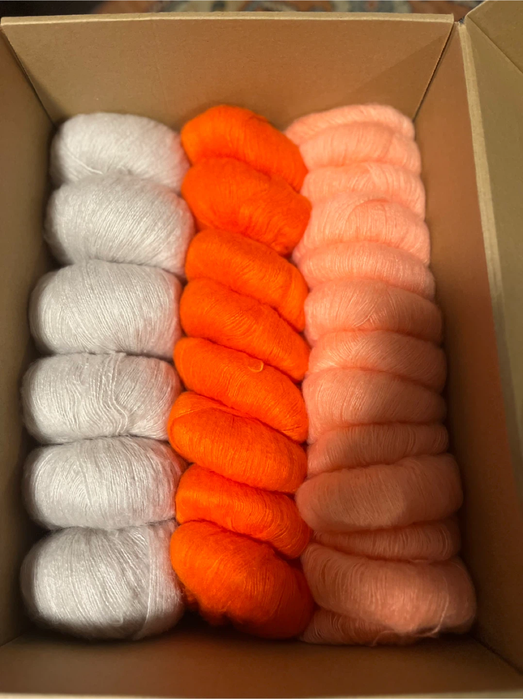Selling a bundle of yarn in three colours: light grey, orange, and peach. Perfect for your next knitting or crochet project!