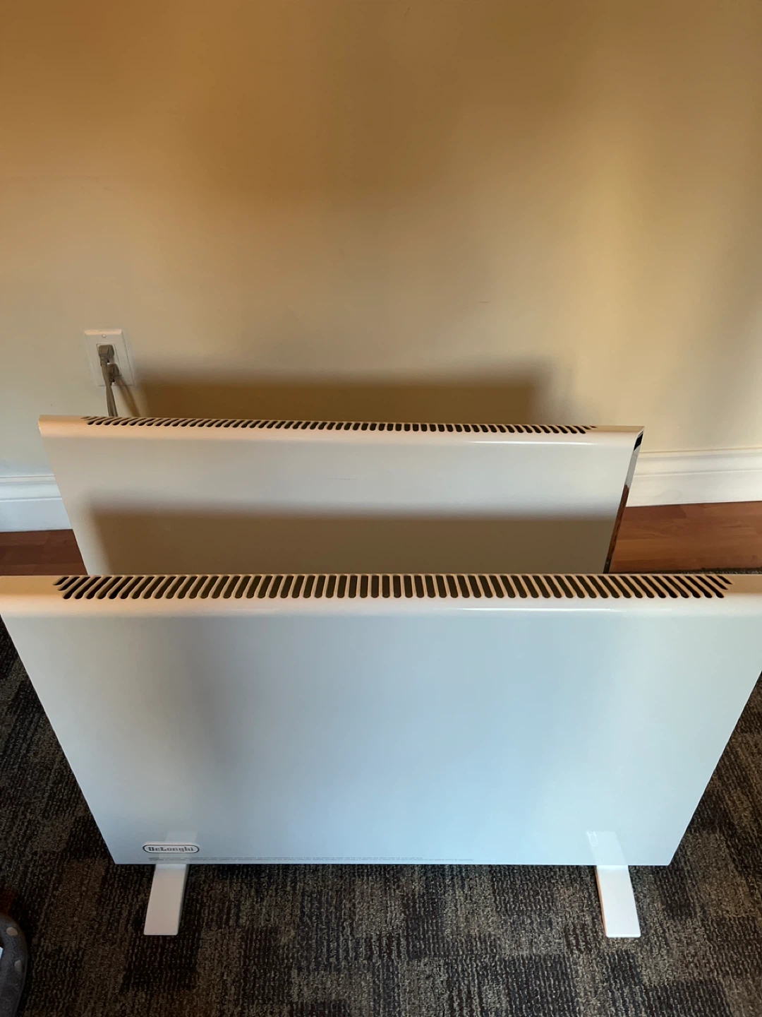 Two DeLonghi white panel heaters are available. They're electric heaters with digital temperature displays. These units are great for providing quick, quiet warmth.