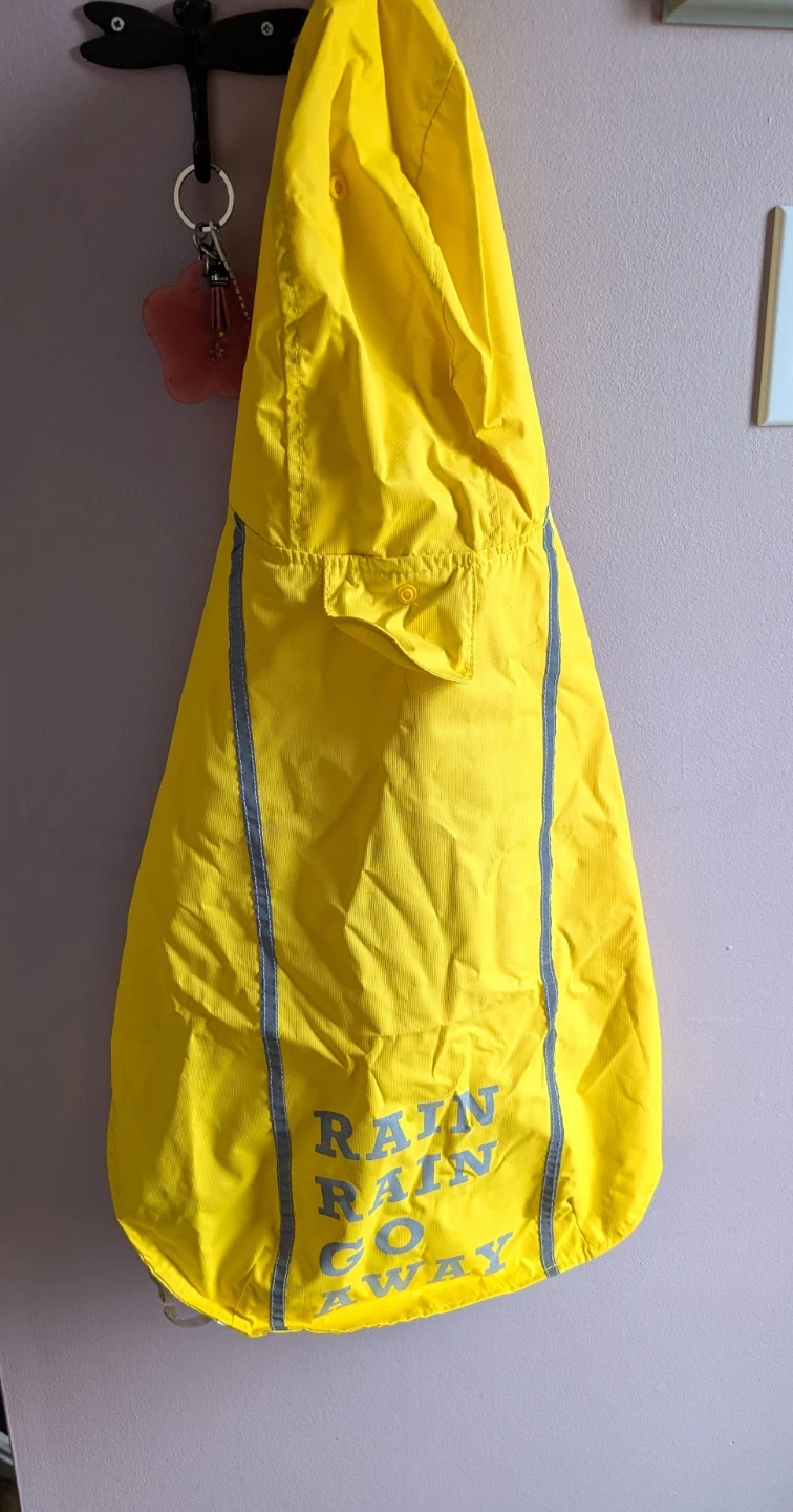 Yellow Dog Raincoat with "Rain Rain Go Away" Print