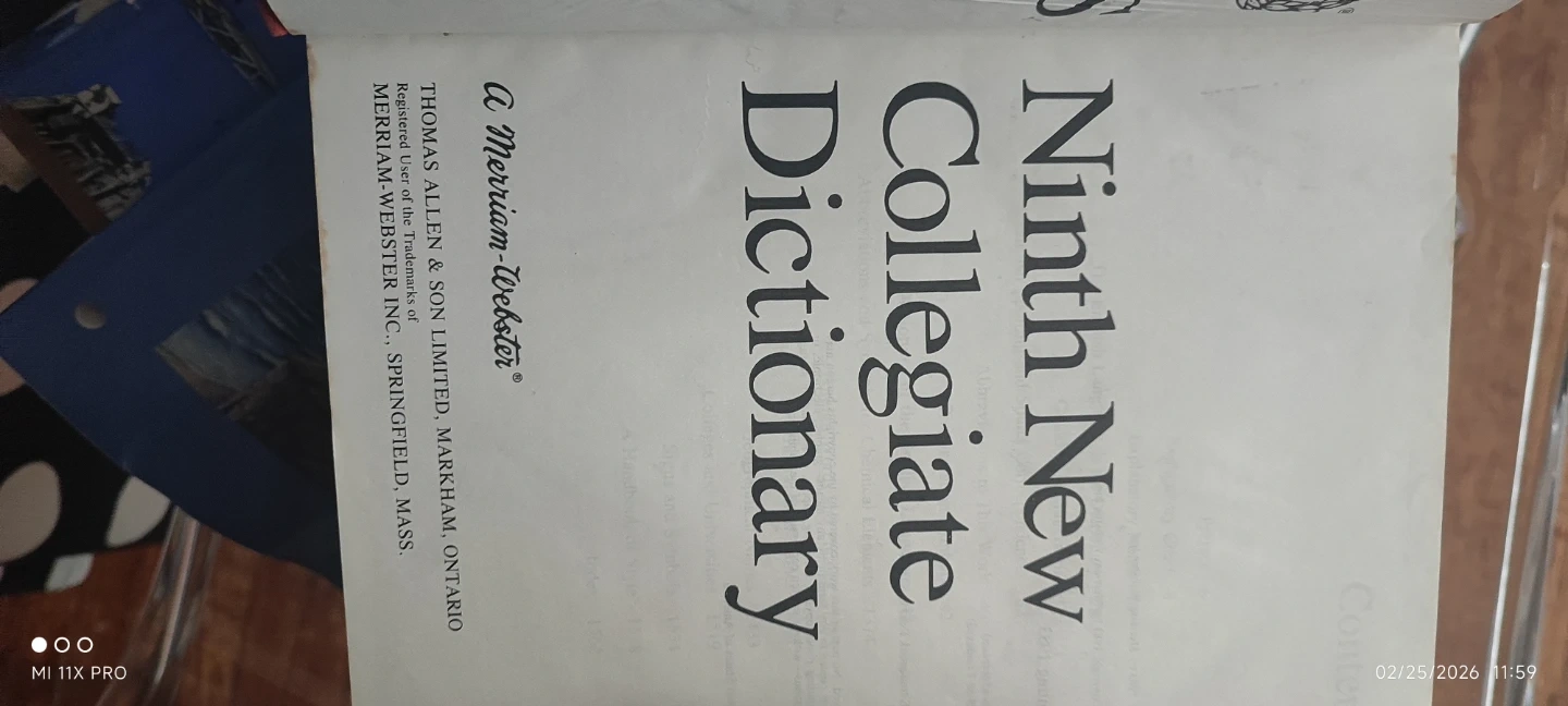 This is the Ninth New Collegiate Dictionary from Merriam-Webster. It's a comprehensive reference book for vocabulary and language.