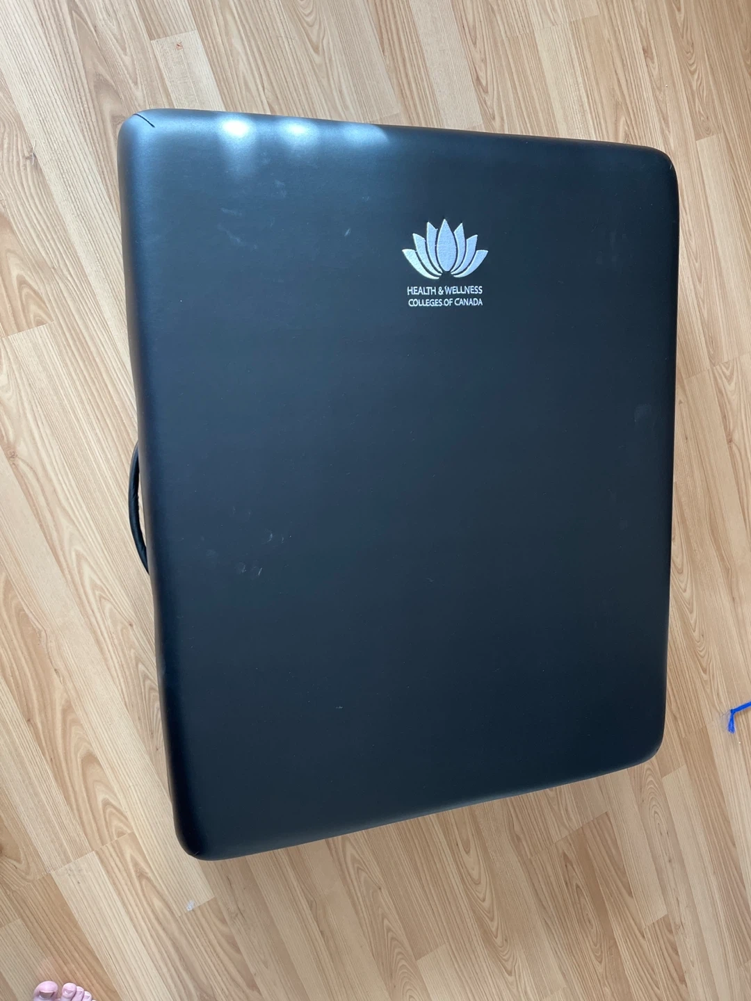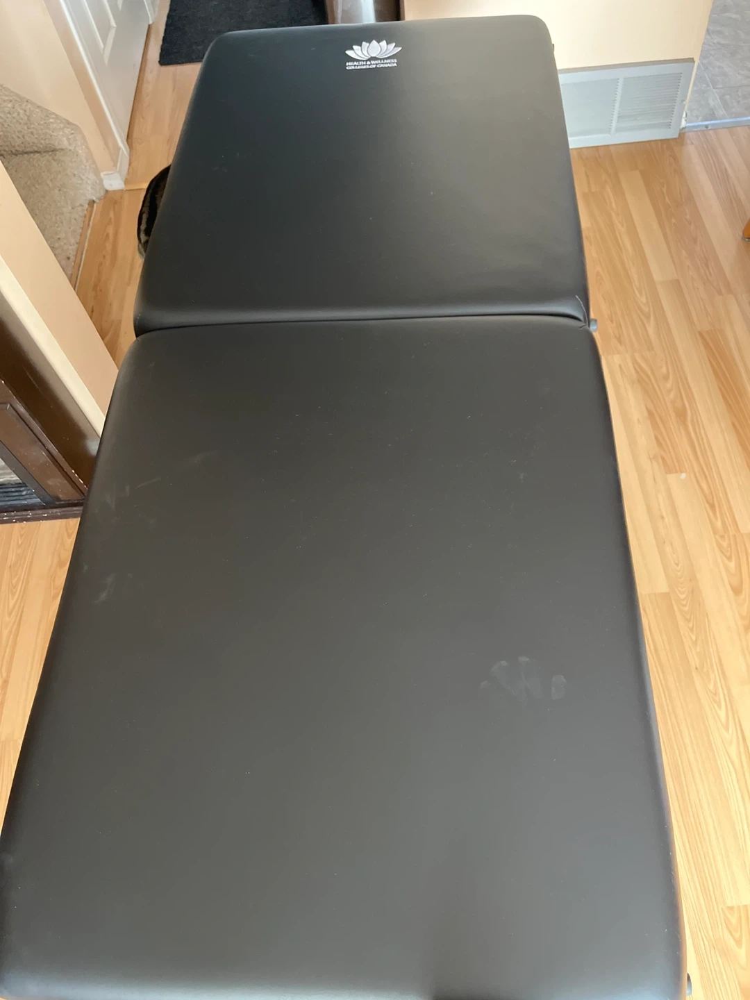 This portable massage table is from Health & Wellness Colleges of Canada. It's black and comes with a carrying bag for easy transport. The table is brand new includes a headrest and arm rest. Can include fitted head rest cover, fitted sheets and blankets.