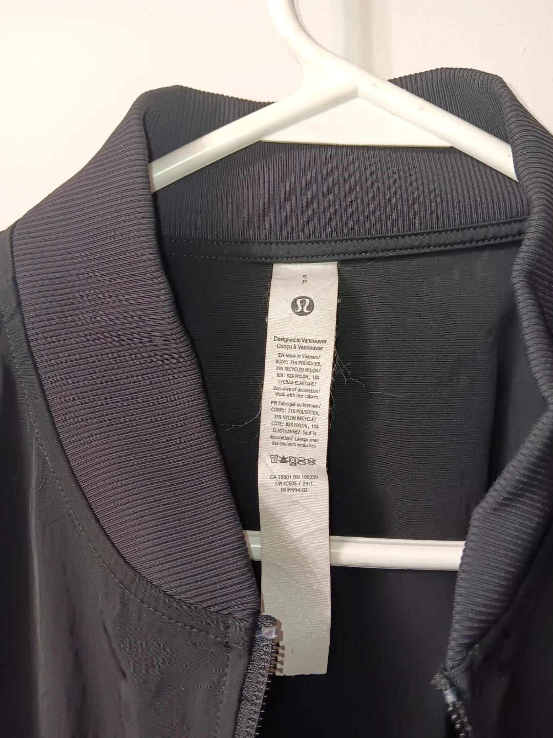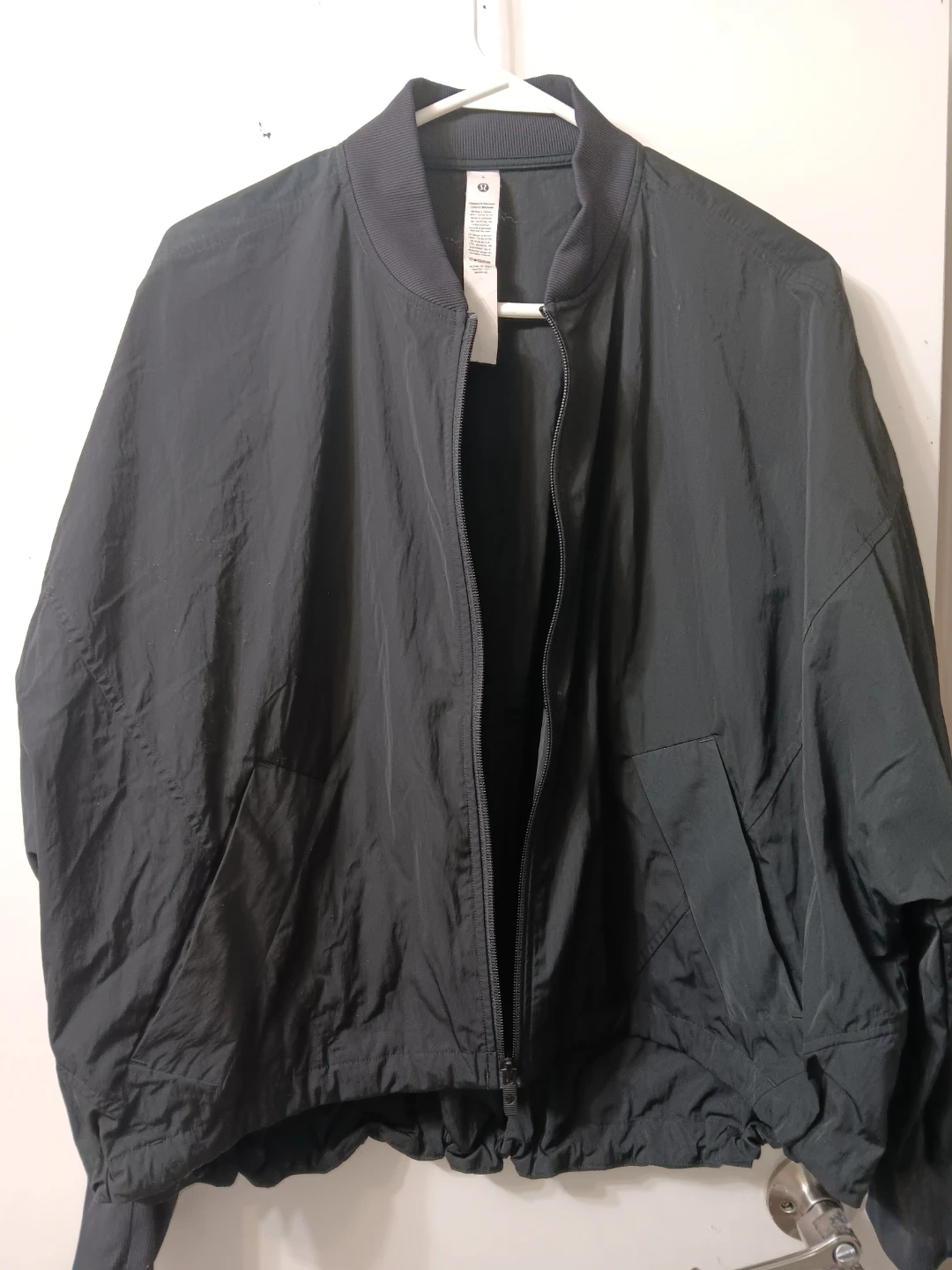 Selling a men's, Lightweight, all black, Lululemon Bomber jacket on a size small. The body is made of 73% polyester and 27% elastane. Fits a bit on the larger size, would probably work on a men's size medium as well. In perfect, like-new condition..only worn twice!! Original retail $$ was $140.00..huge savings on this versatile jacket!!