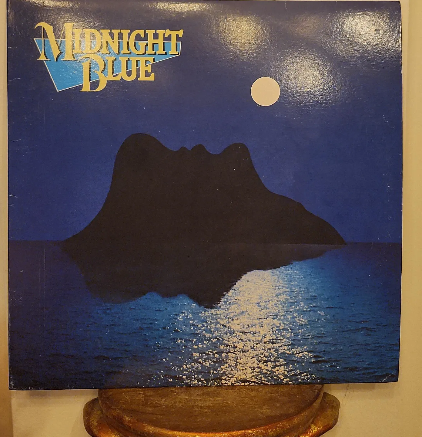 This is the album cover art for Midnight Blue. It features a dark silhouette of a mountainous landscape reflected on the water under a full moon. The artwork is primarily in deep blues and black. NO SKIPS!