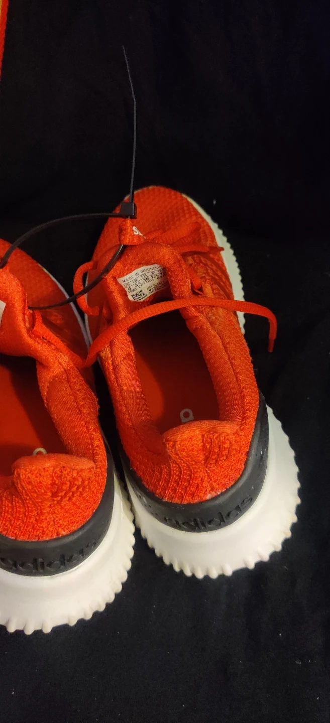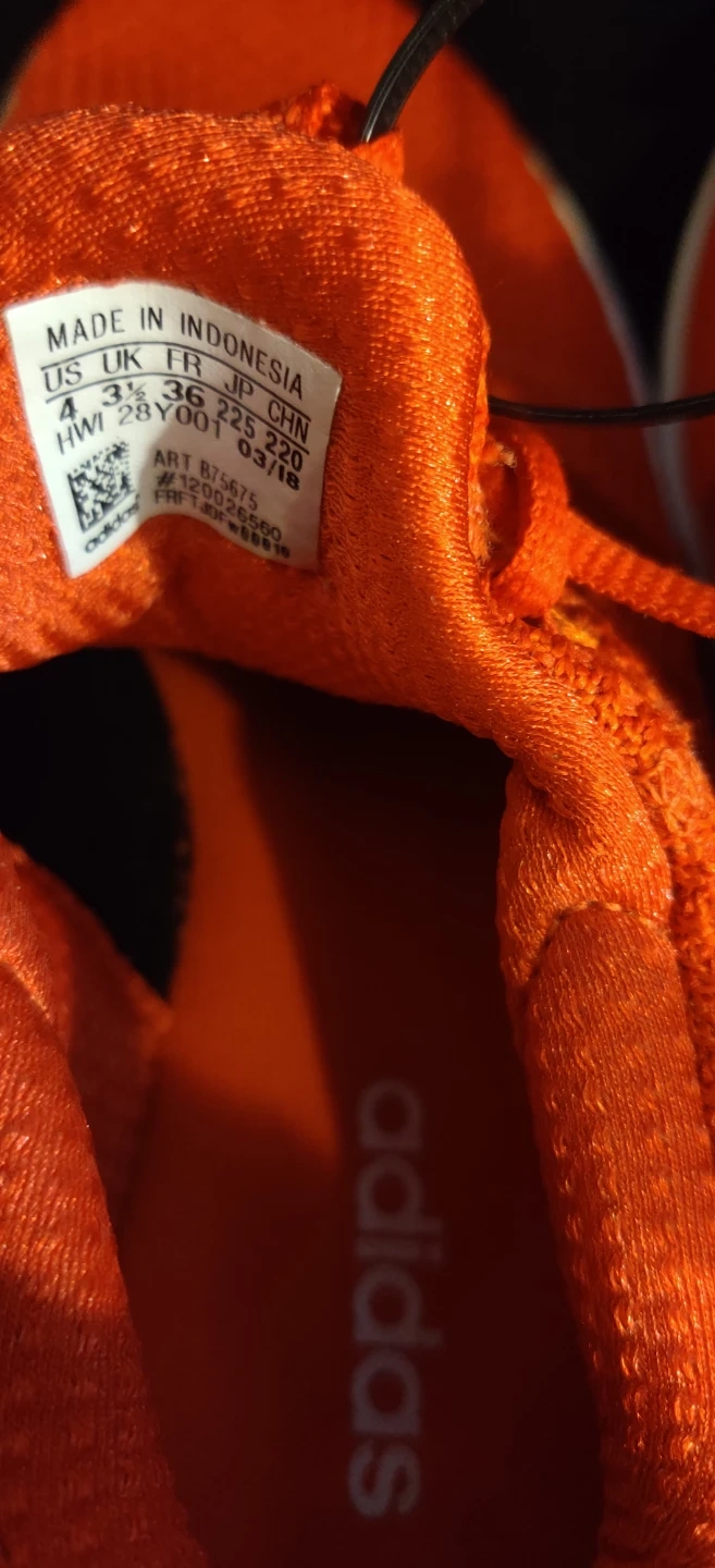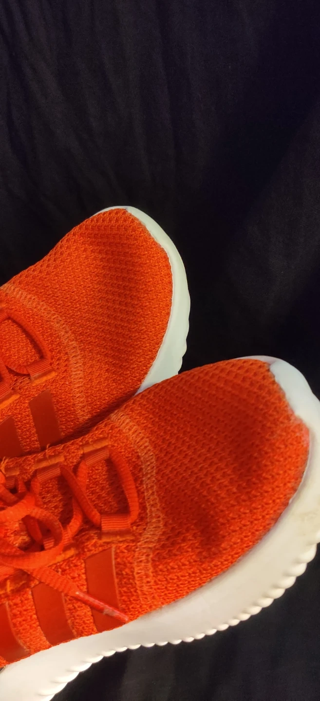 These bright orange Adidas running shoes are perfect for active kids! They feature a breathable knit upper and a cushioned sole for comfort. Size 4 youth. Worn only a few times
