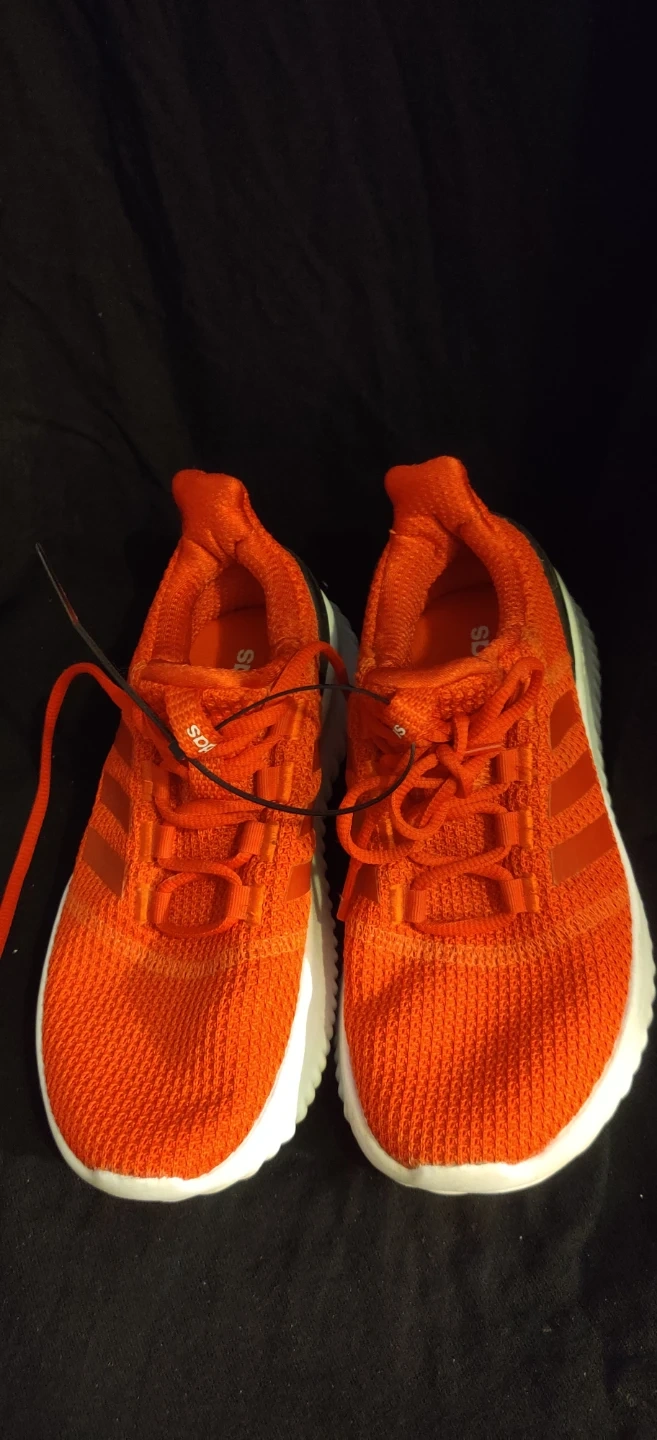 These bright orange Adidas running shoes are perfect for active kids! They feature a breathable knit upper and a cushioned sole for comfort. Size 4 youth. Worn only a few times