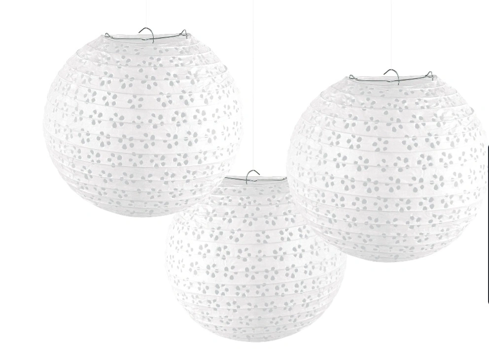White Eyelet Paper Lanterns 3 pc. Set...New