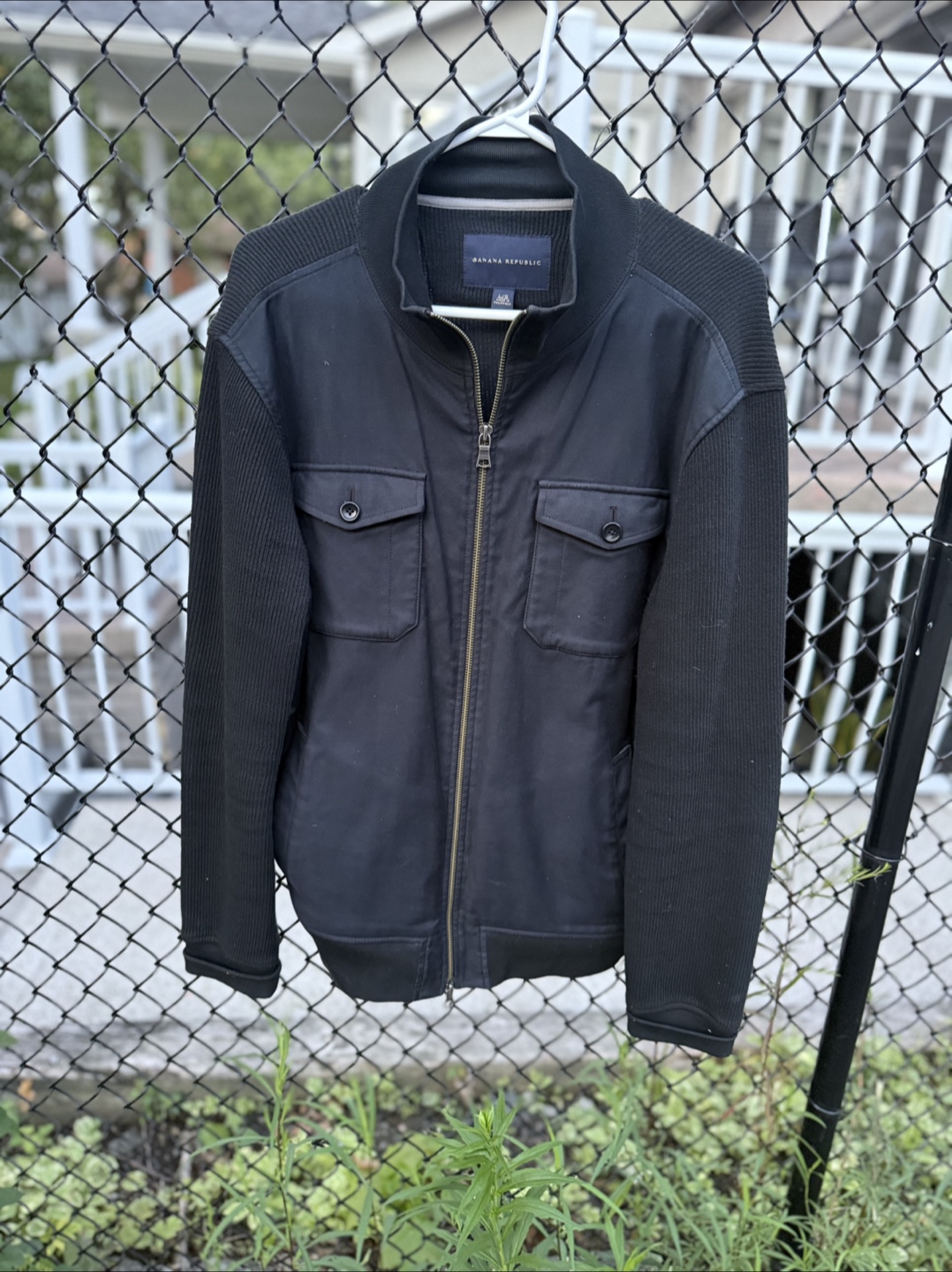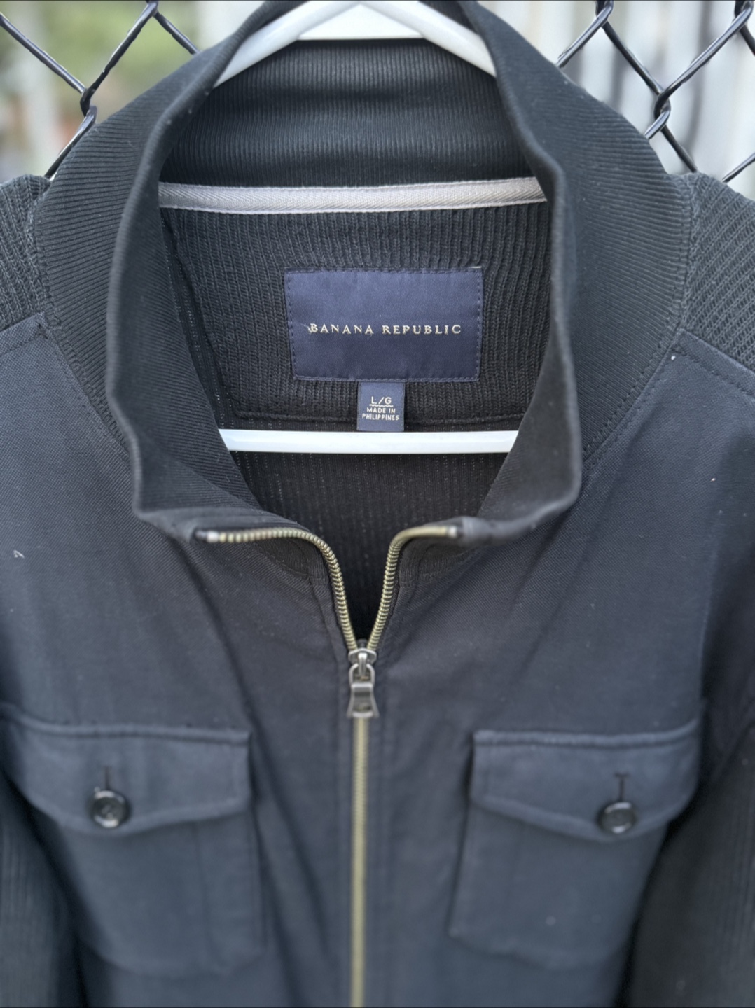 Here's a Banana Republic jacket in size L/G. It's a stylish black colour and in great condition. Perfect for layering!