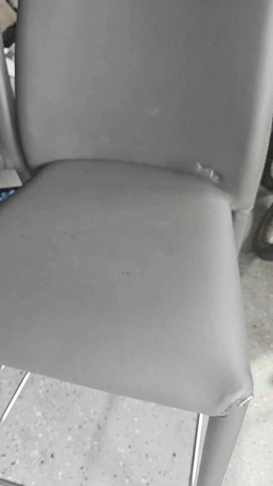 1 has light scratches on the seat as seen in picture, picture 3 and 4. Another has a small cut towards the bottom of the seat and a small damage on the back, as seen in picture, picture 1, 2 and 5.