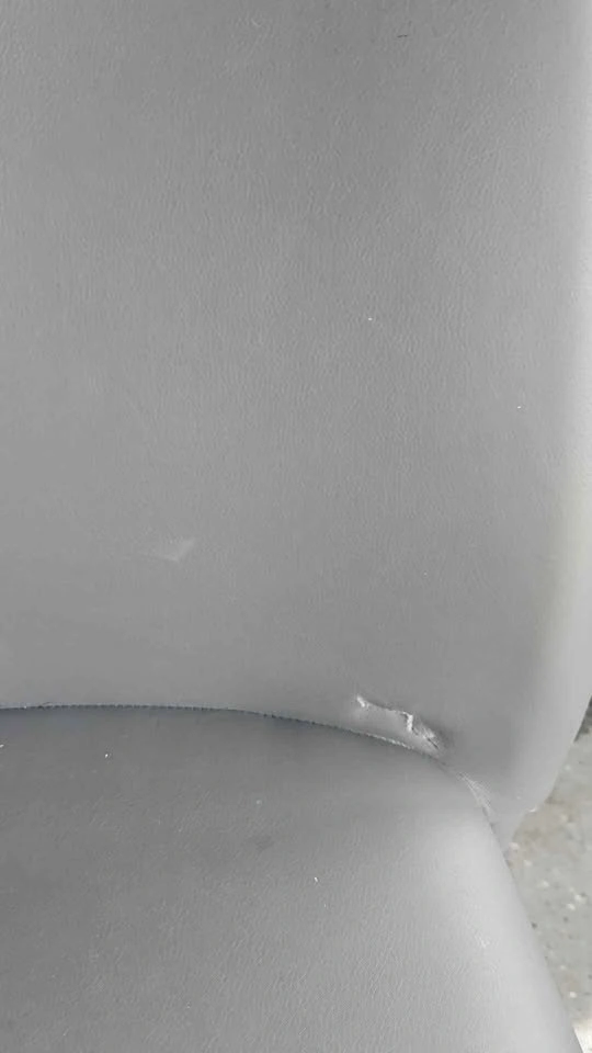 1 has light scratches on the seat as seen in picture, picture 3 and 4. Another has a small cut towards the bottom of the seat and a small damage on the back, as seen in picture, picture 1, 2 and 5.