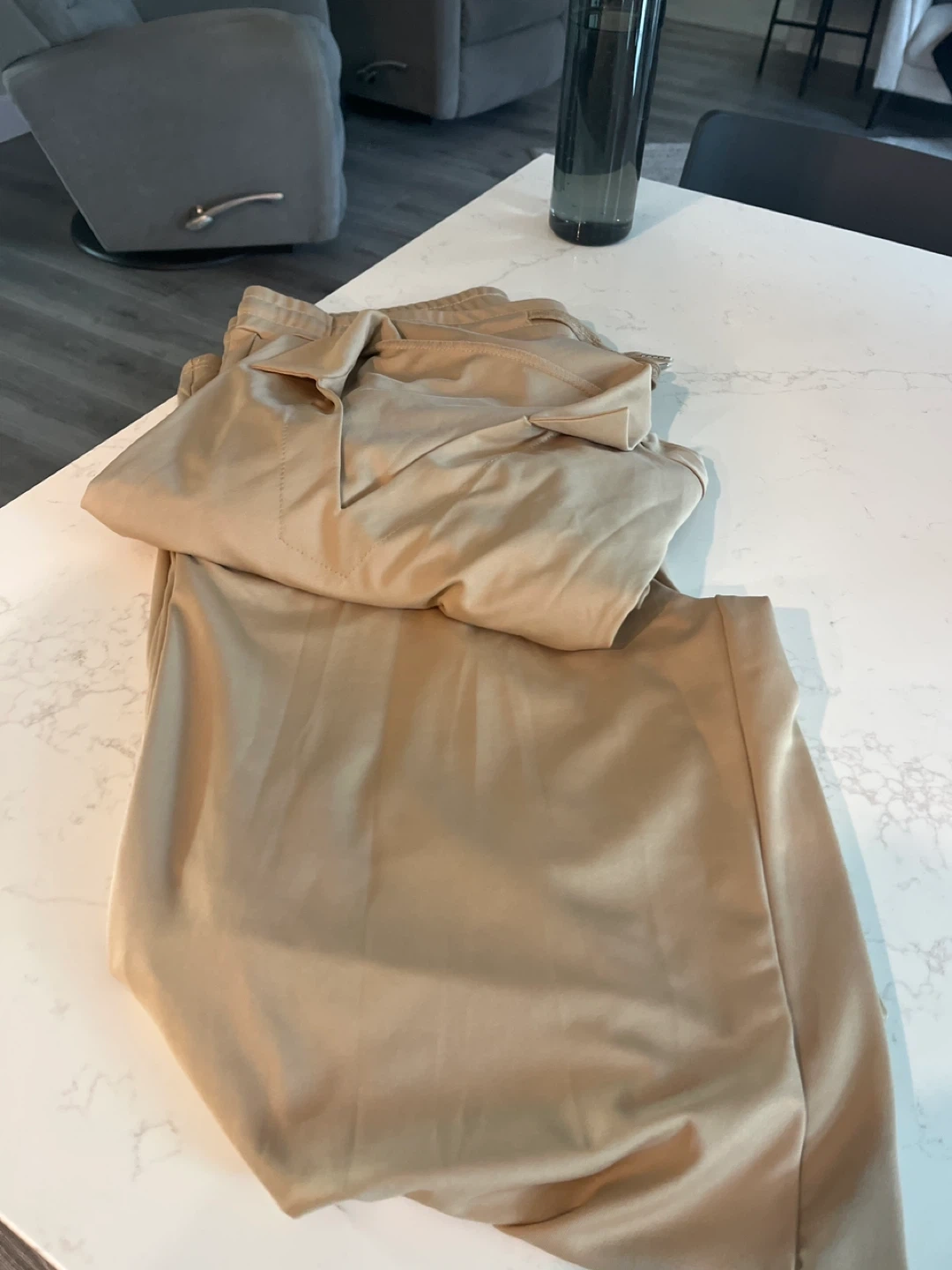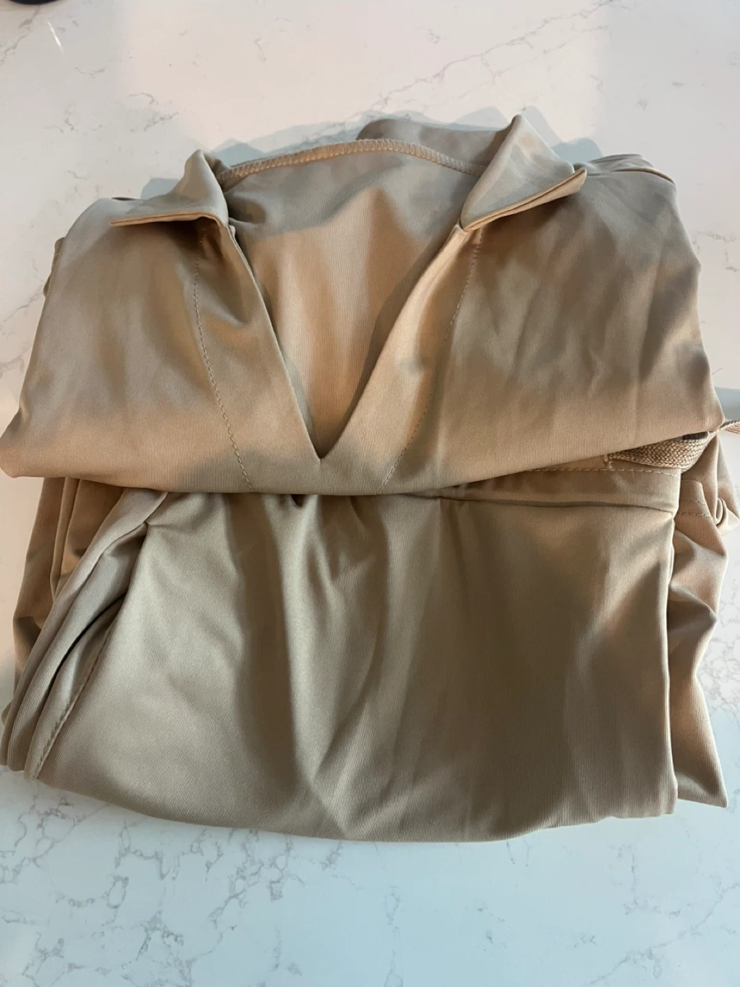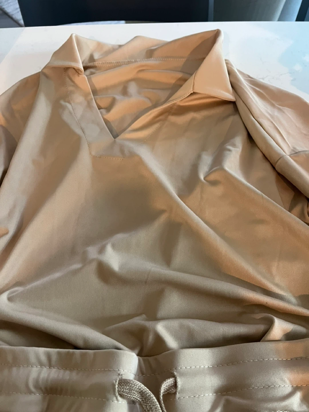 Selling a beige two-piece set! It looks to be in great condition and ready for a new home. This set would be great for casual wear or lounging around the house