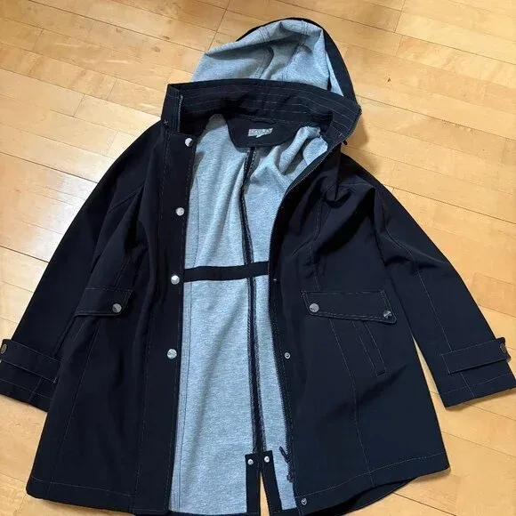 Never worn, tags inside the pocket (sorry removed). Lovely black trench coat with hoodie, perfect for this rainy season