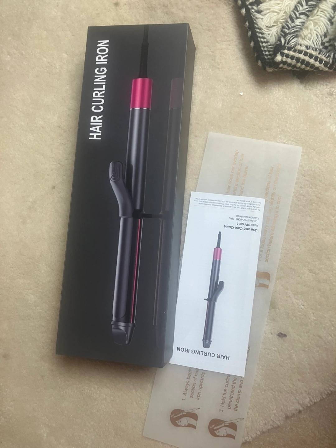 Great gift idea ,new in box,original price $79.99 asking only $40 curling iron in black and pink, comes with a box and instruction manual.