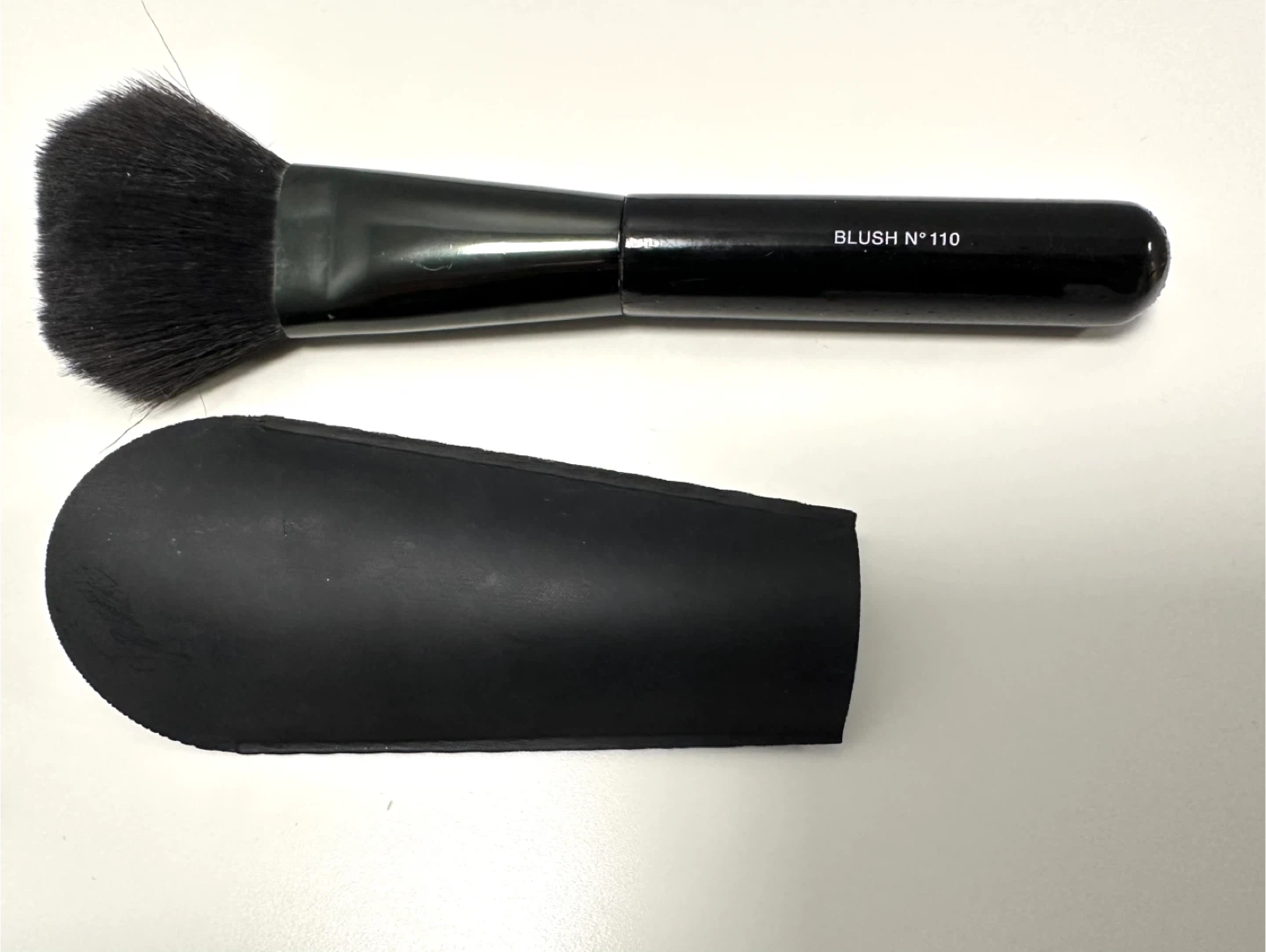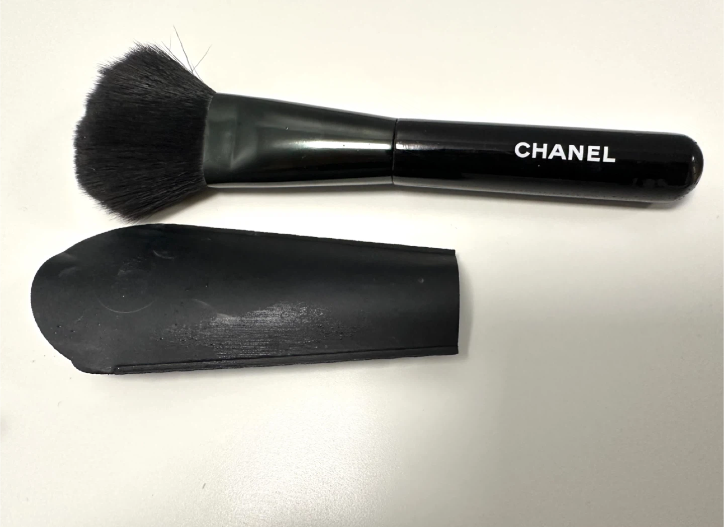 This is a Chanel makeup brush. It's designed for blush application. The brush comes with its original protective cap.