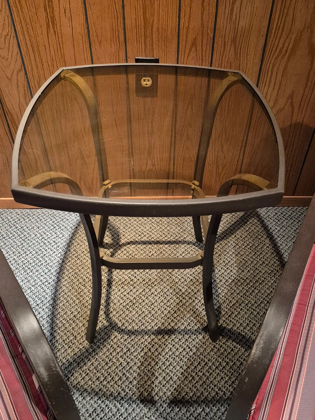 β The table has a metal frame and tempered glass top, and is super sturdy and solid!