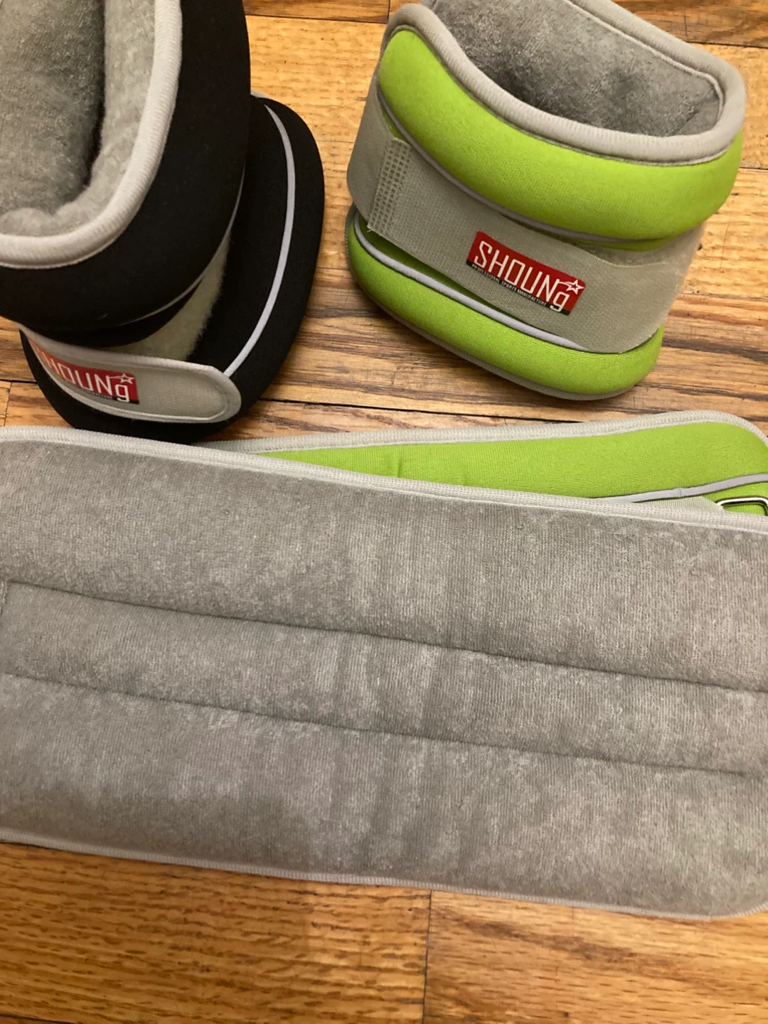 Set of SHOUGANG ankle weights, including black(10lb) and green(lb) pair. Features adjustable straps for a secure fit. Great for adding resistance to workouts! Cash or Zelle only