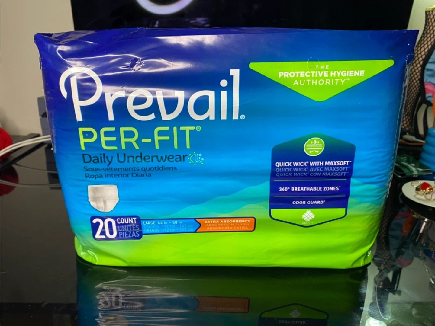 Prevail Per-Fit Daily Underwear provides quick wick with maxsoft for rapid wetness away from skin. It features 360 breathable zones and odor guard technology. These are size large, fitting waist sizes 44-58 inches.