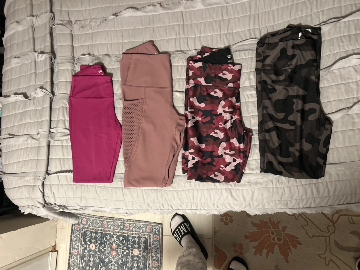 Selling a set of leggings. Colors include pink, mauve, red camo and black camo. Great for workouts or lounging around!