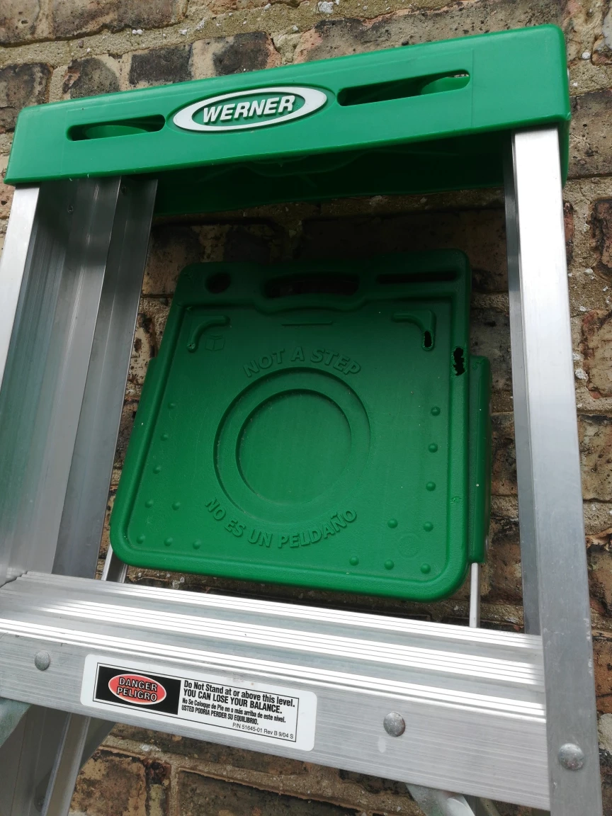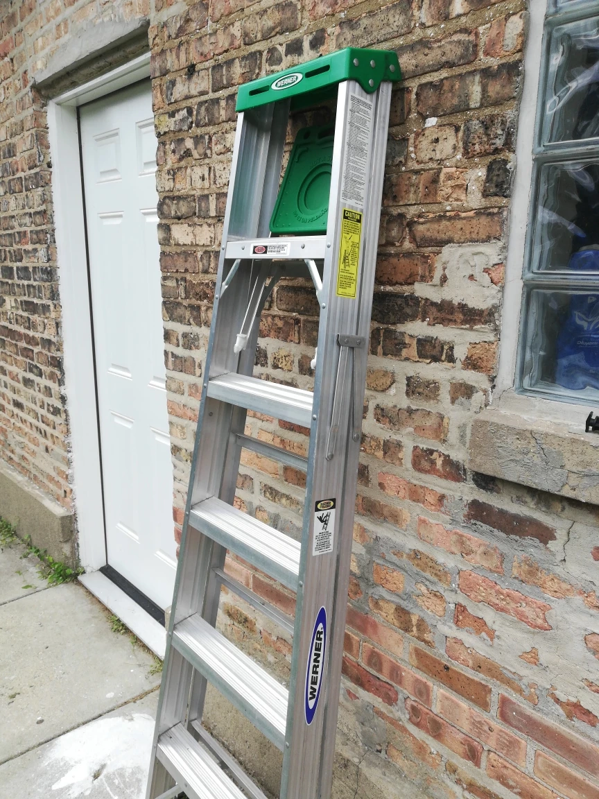 Selling a Werner aluminum 6 ft step ladder! It's in good condition and ready for your next project. Perfect for household tasks or professional use, this ladder is sturdy and reliable. The green top adds a nice touch, and it's easy to store when not in use