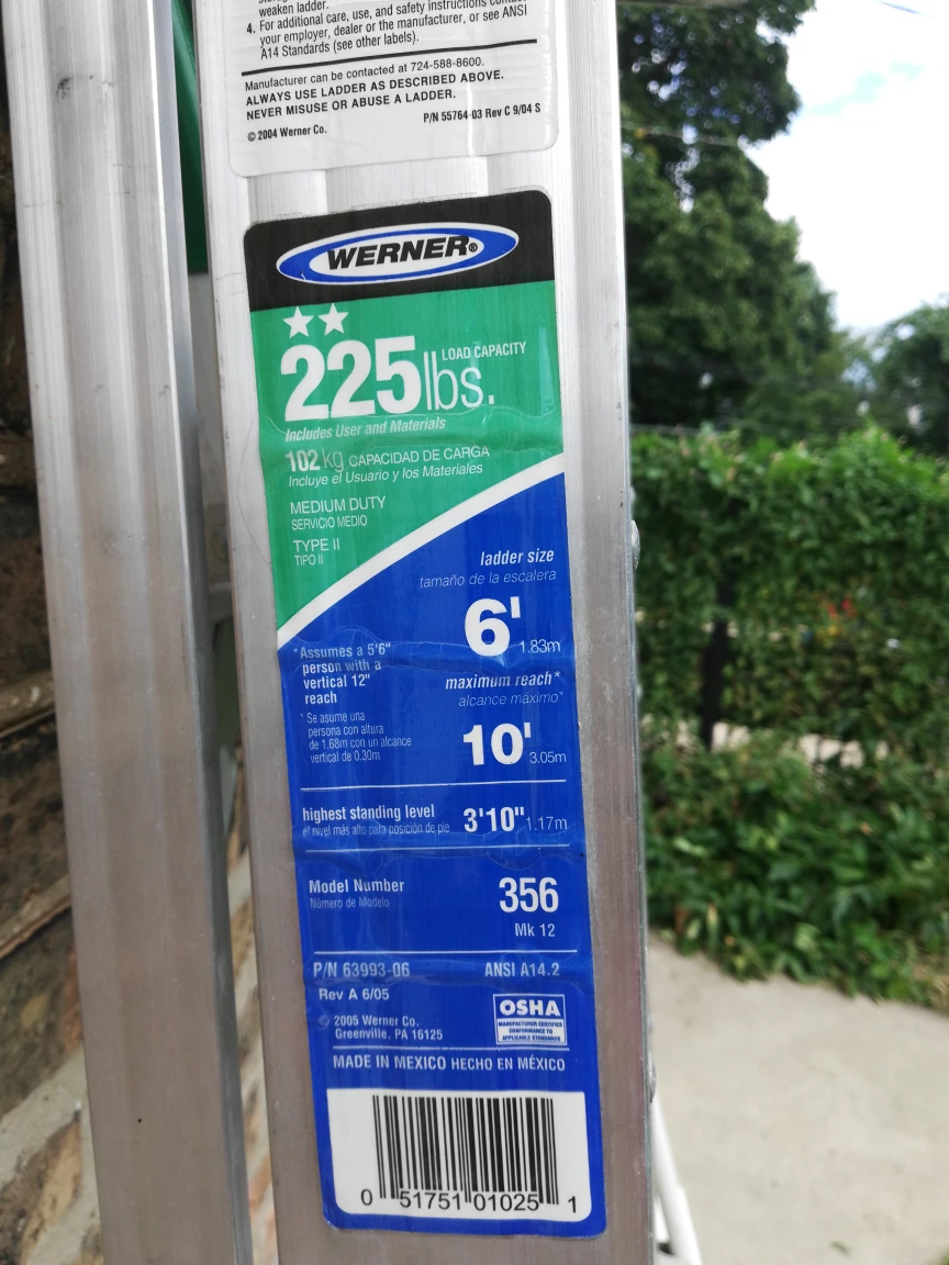 Selling a Werner aluminum 6 ft step ladder! It's in good condition and ready for your next project. Perfect for household tasks or professional use, this ladder is sturdy and reliable. The green top adds a nice touch, and it's easy to store when not in use