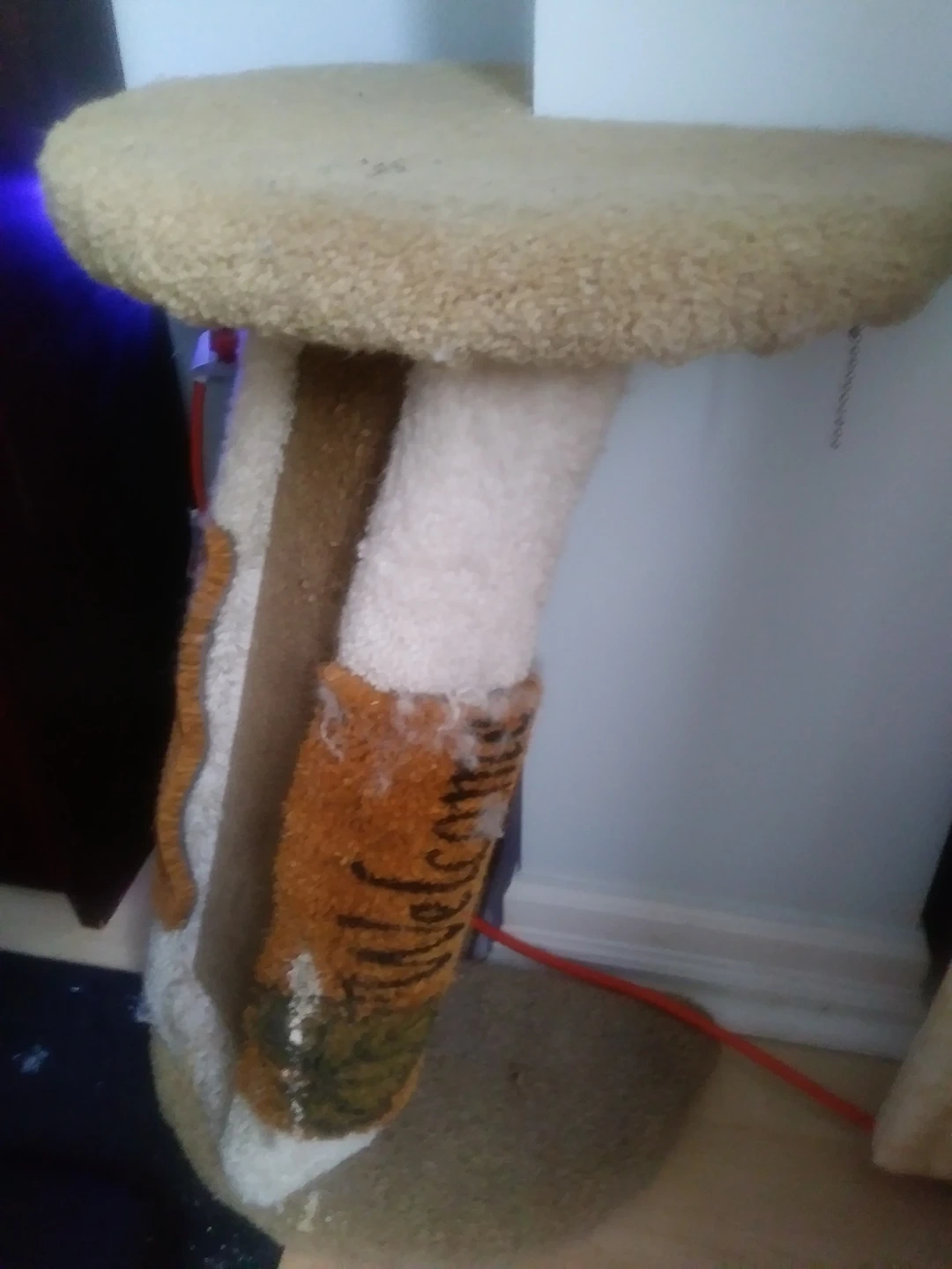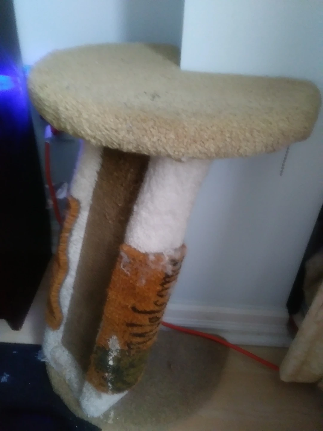 Conveniently fitted in corners. Additional scratch pads r installed for kittens. Cardboard scrach pad at center can be change easily as need. Height = 22". Seat Diameter = 15"