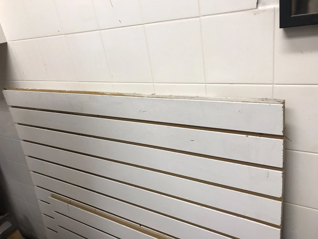 I'm selling white wall panels, 4 peace. They're great for organizing and displaying items in a shop or home setting. Easy to install and very versatile for storage solutions