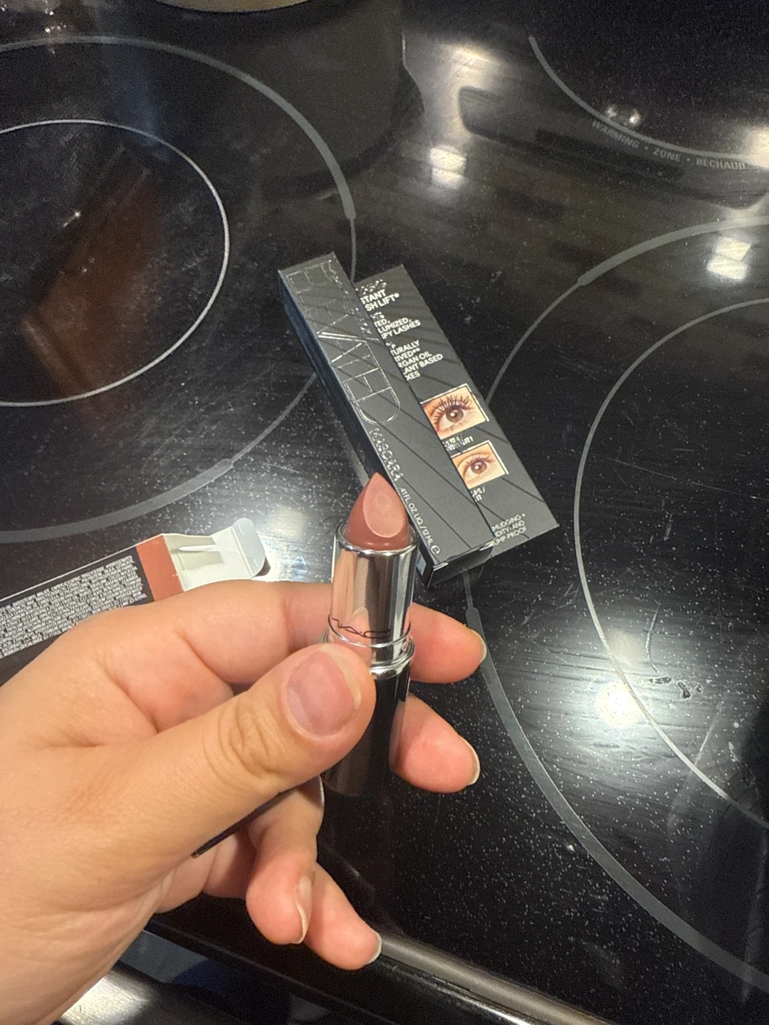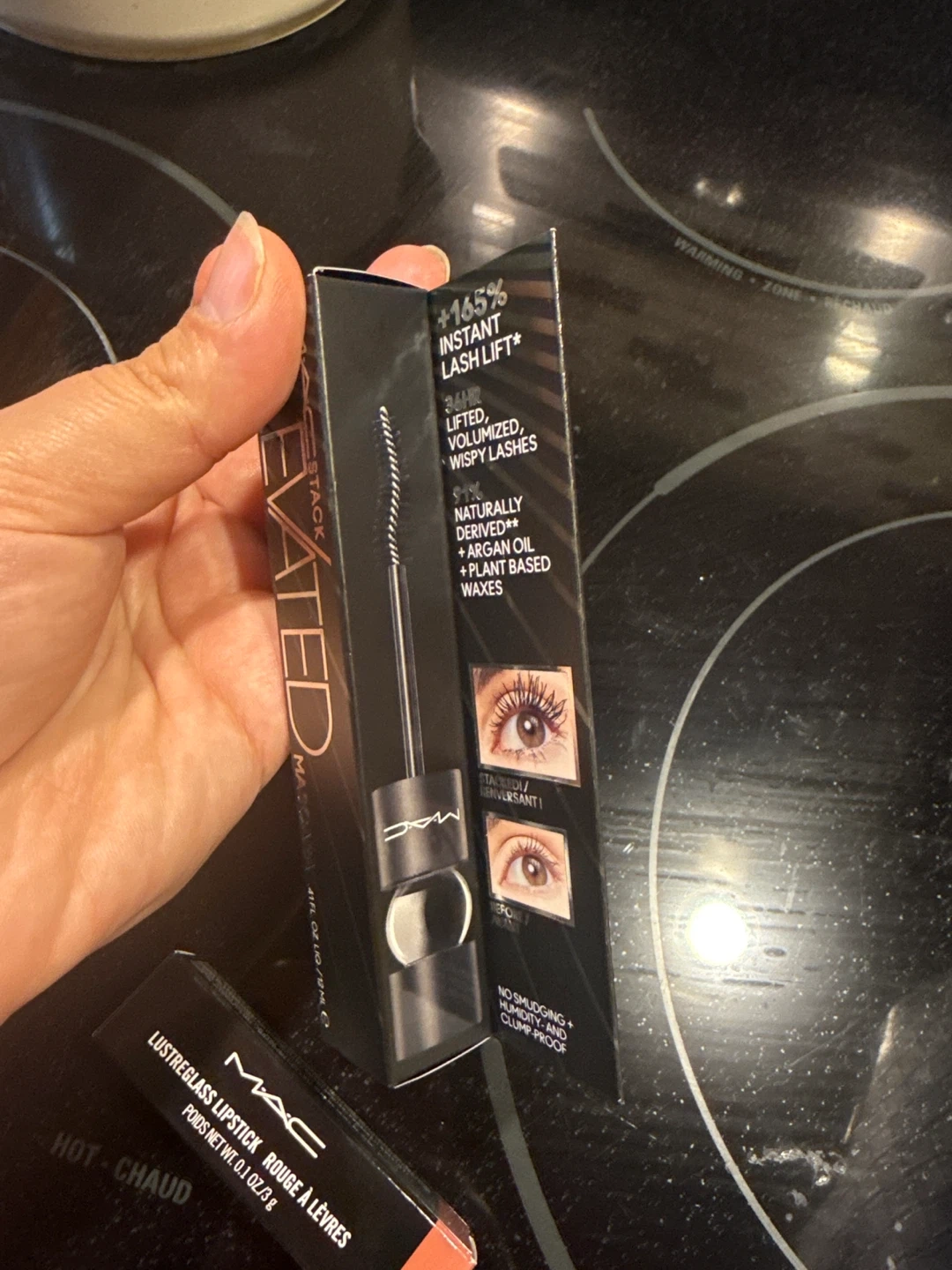 Selling a MAC Lustreglass Lipstick and MACStack Mascara. The lipstick is in the shade 'Hug Me'!