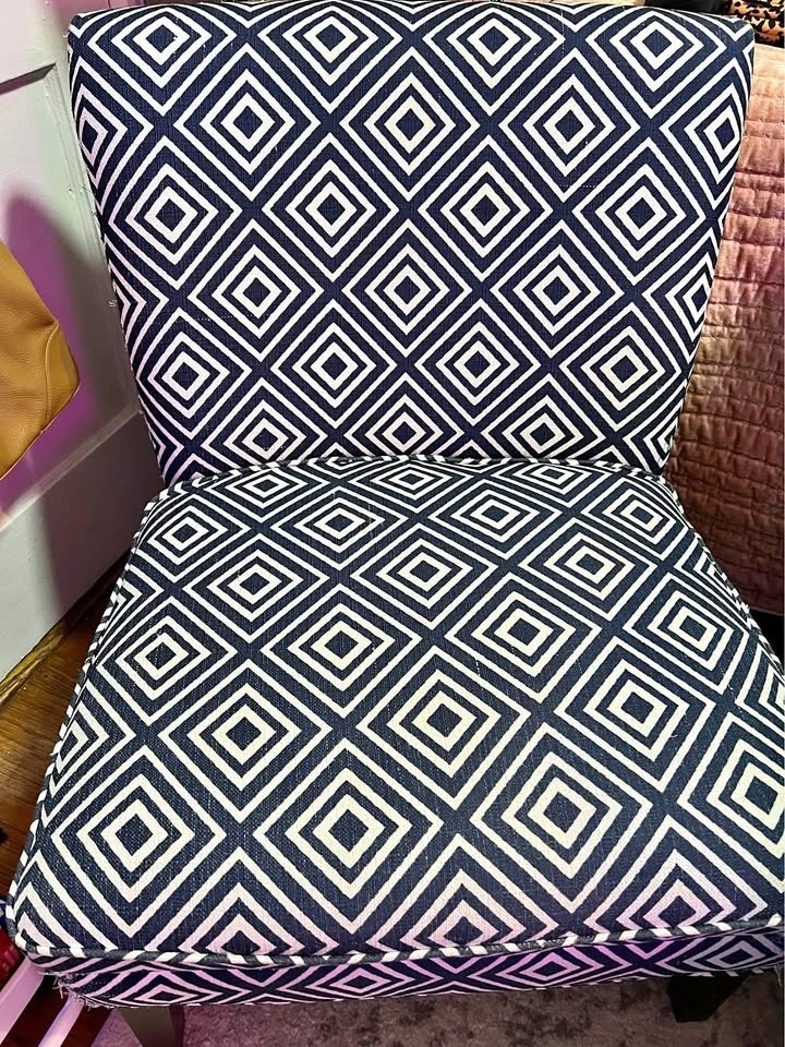 Blue and white chair in good condition.