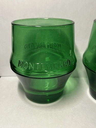 Set of 2 vintage Montenegro emerald green drinking rock tumblers, 12oz with thick bottoms. Condition is Used.