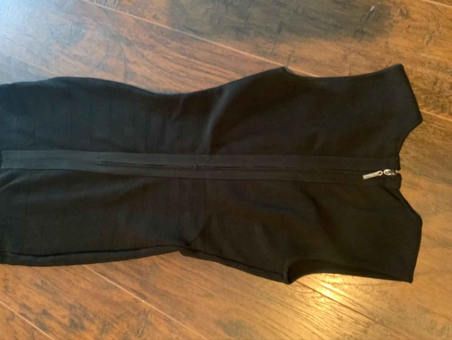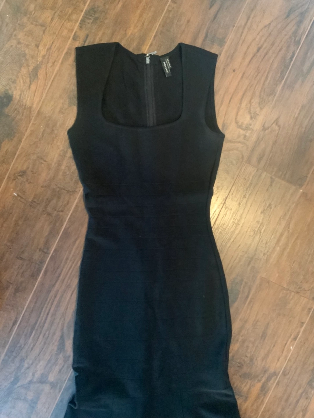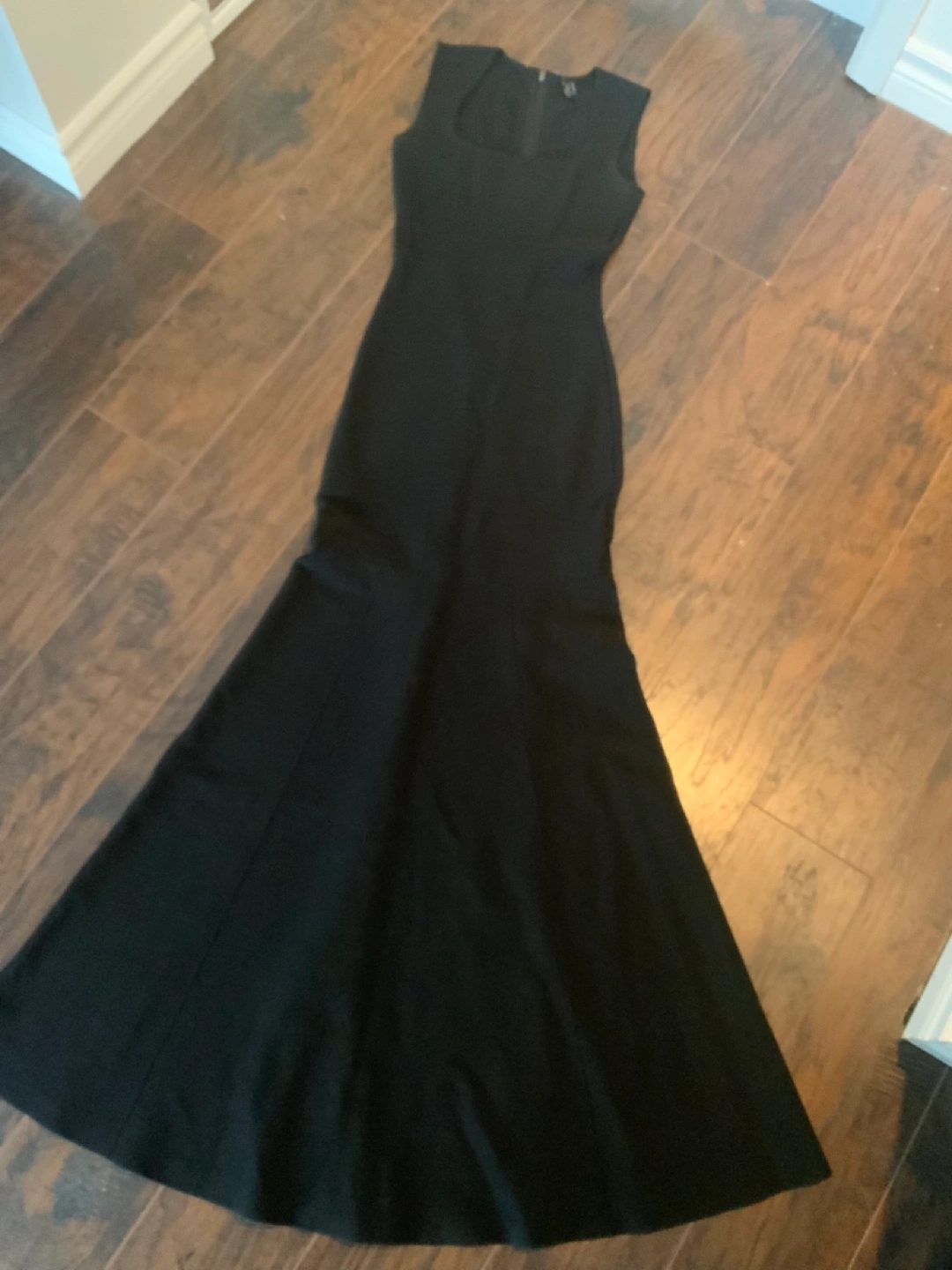 Stunning black maxi dress. A Guess bodycon dress description typically highlights its curve-hugging fit, stretchy fabrics (like cotton/spandex or synthetic blends), and stylish details such as chain accents, unique necklines (sweetheart, square, off-the-shoulder), or open backs, designed to feel comfortable yet fashionable for nights out or events, emphasizing quality and contemporary style. They often feature materials like ribbed knits, viscose blends with metallic fibers, or comfortable cotton-elastane mixes for a confident, figure-flattering look. This sleeveless design has a back zipper closure.