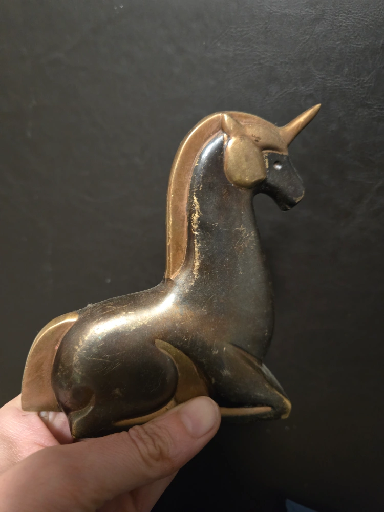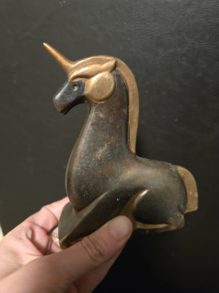 Buy & SellVintage Bronze Unicorn FigurineVintage Bronze Unicorn Figurine$40Unique bronze unicorn statue. Small, collectible piece. Dark bronze colour with gold accents. Shows some minor wear.WHERE TO MEETSouth cameronView MapSELLERverifiedCandaceS Cameron650 reviews0 chats·0 favorites·8 viewsSEND CHAT TO SELLERHi Candace! I’m interested in your listing.Hi Candace! I’m interested in your listing.Get the Karrot app to chatSign In to chat