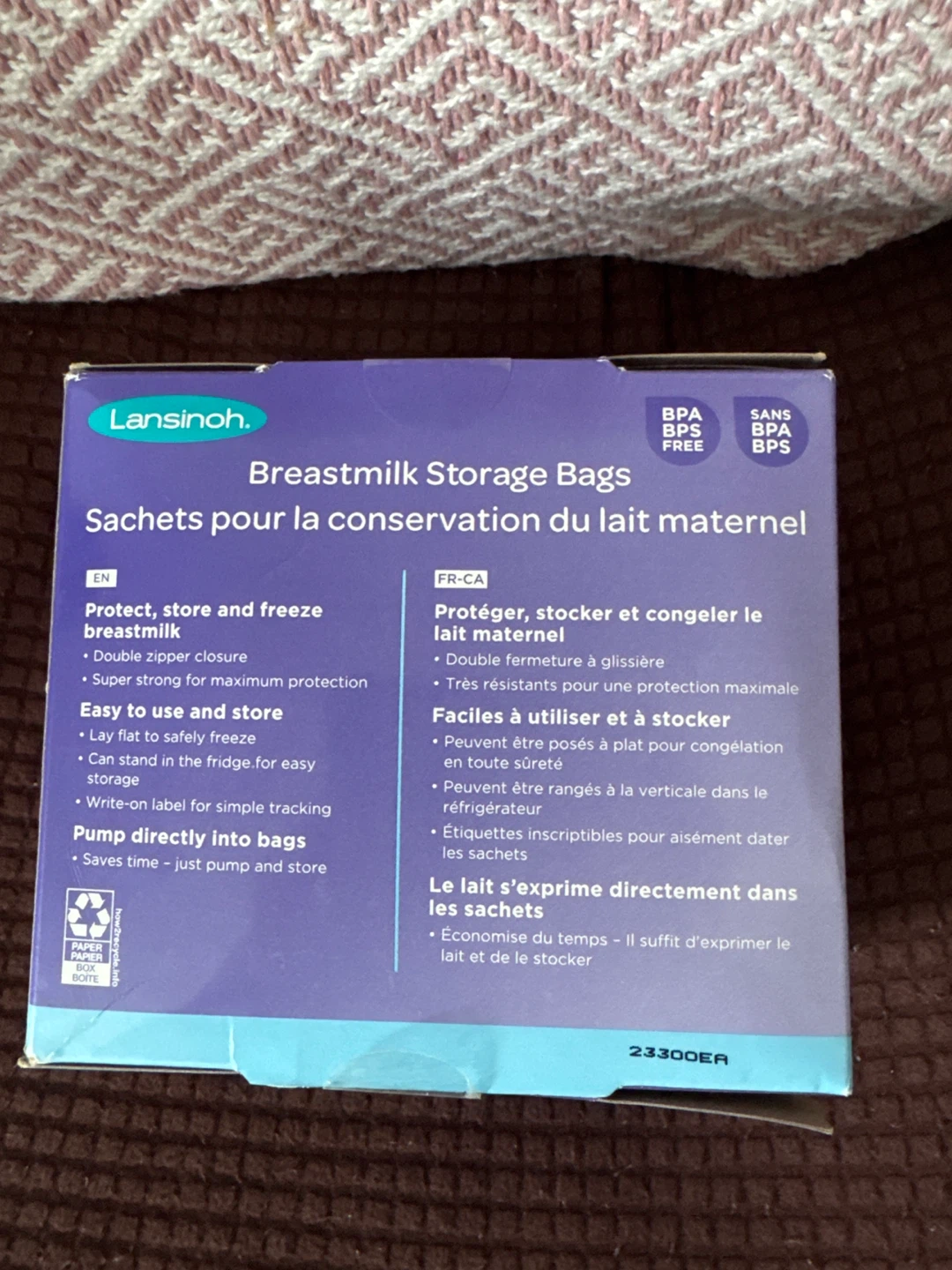 These Lansinoh breastmilk storage bags are pre-sterilized for safe storage. They feature a double zipper seal for ultimate protection and can be pumped directly into. The box contains 100 bags.