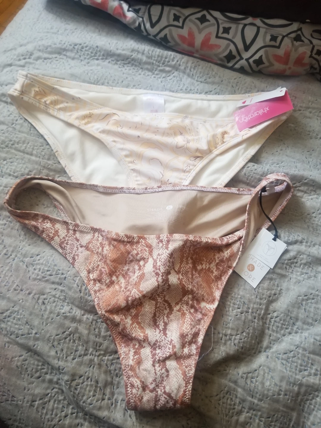 LADIES BRAND NEW WITH TAGS Two pairs of bikini bottoms, one with a snake print and the other with a floral pattern. Both are from Shade & Shore. They're great for your next beach vacation! Both for $15 Please let me know if Interested Size XL