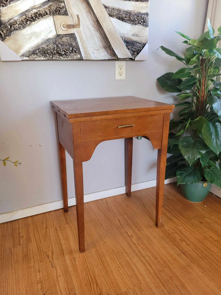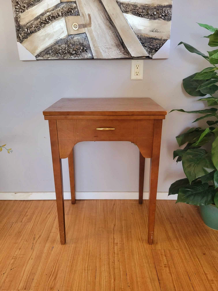 MCM Walnut Hallway Table With Stored Singer Sewing Machine Inside (Delivery Available)