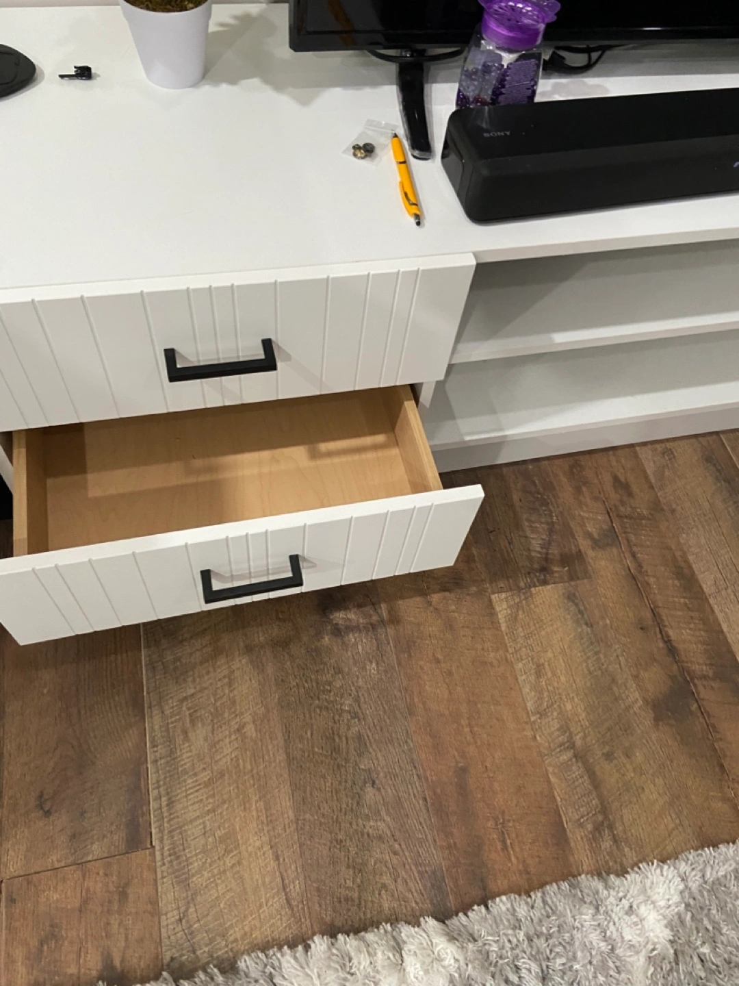 Buy & SellWhite TV Stand with DrawersWhite TV Stand with Drawers$160Modern white TV stand. drawers and open shelving. Sleek design. Great for living room. Minimalist style.ConditionNewWHERE TO MEETYMCAView MapSELLERLilyRockway353 reviews3 chats·0 favorites·40 viewsSEND CHAT TO SELLERHi Lily! I’m interested in your listing.Hi Lily! I’m interested in your listing.Get the Karrot app to chatSign In to chat
