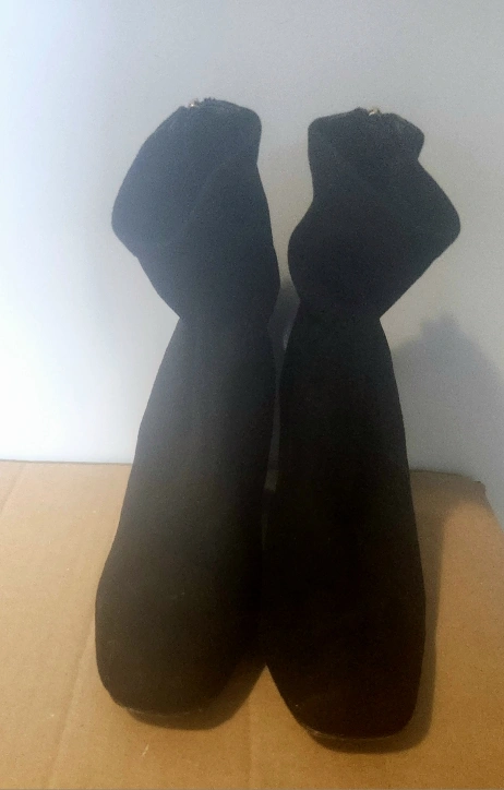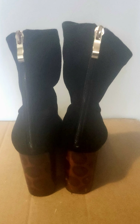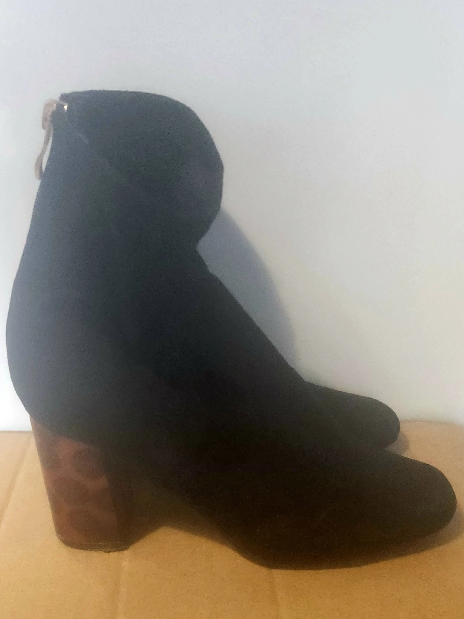 Selling a pair of Truffle Collection ankle boots in black! They're a size 9 and feature a unique patterned heel. Perfect for adding a bit of style to any outfit. Comfortable suede boots for any occasion.